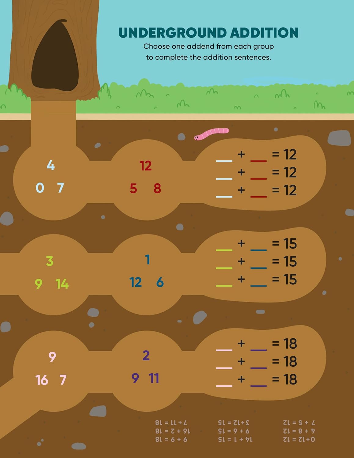 Learn by Sticker: Addition and Subtraction, solve first grade-level addition and subtraction problems and use the answers to determine where to place each sticker to create ten sticker images of beautiful baby animals. Plus, the back of each sticker page contains fun, critical thinking-based math activities like solving riddles, decoding secret messages, and more.