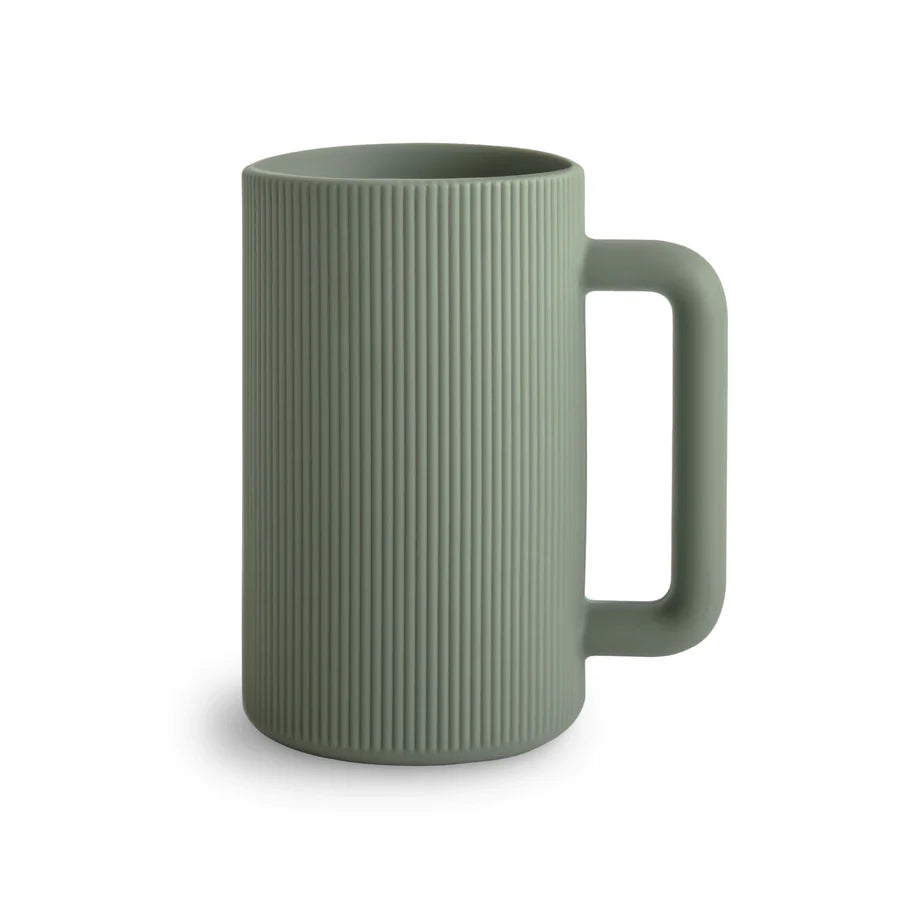 Simplify the evening routine with our bath rinse cup that allows parents to wash away suds and bubbles with a controlled water stream. With a textured exterior and a convenient handle, it's easy to keep a secure grip while pouring. Made from food grade silicone and featuring calming colors, the Mushie bath rinse cup helps children enjoy bath time and end the day extra clean.
