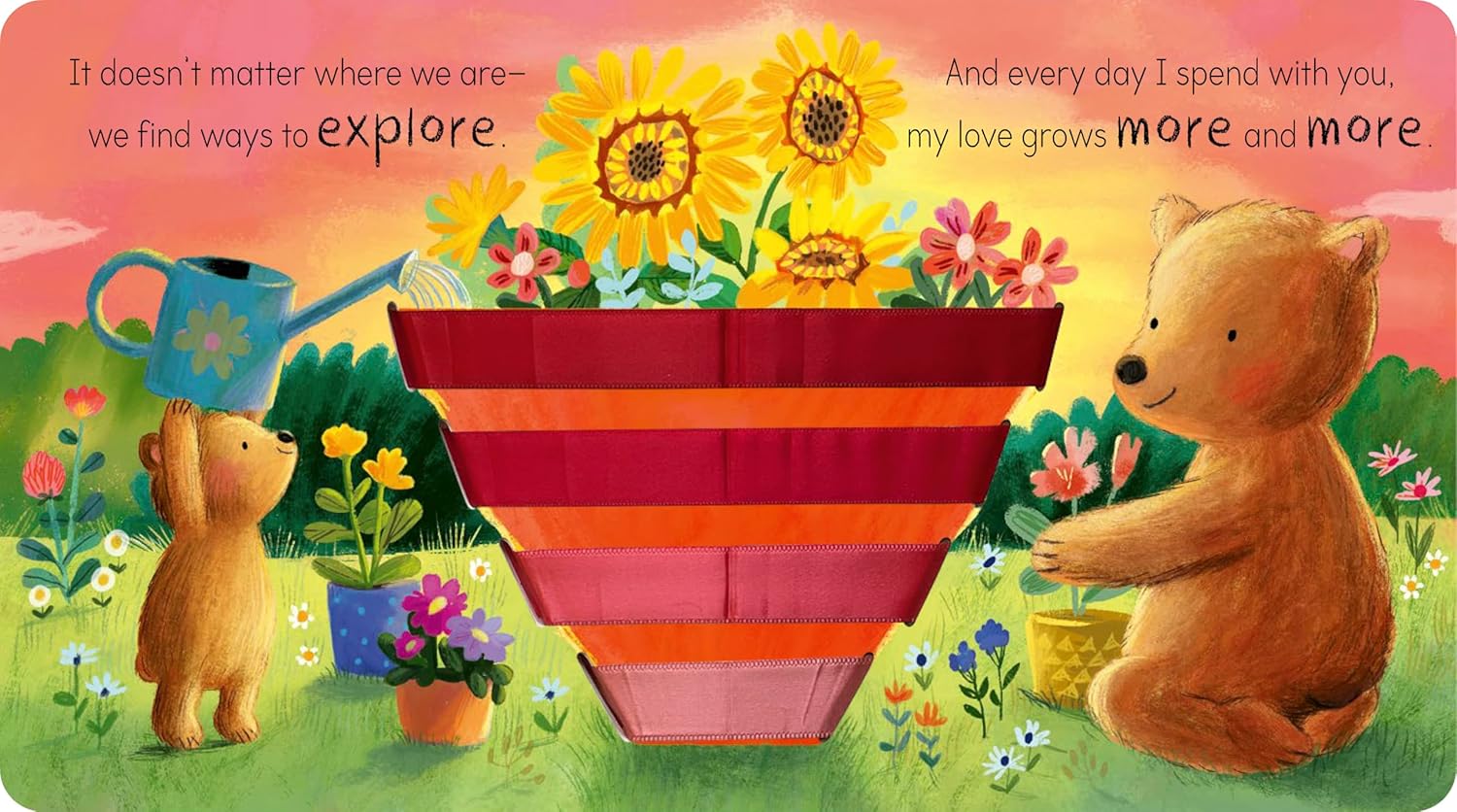 This cleverly designed board book of the love between parent and child, which features gender-neutral pronouns throughout, reveals a colorful strand of ribbon with each turn of the page, gradually building to become different things: a hot-air balloon, an ice-cream sundae, and even a giant flowerpot filled with beautiful flowers. Children can watch in wonder as the ribbons slowly combine to create a giant heart at the end. With a parent and child pairing and warm, emotional text, this is the perfect book to share that can be read by anyone, to anyone.