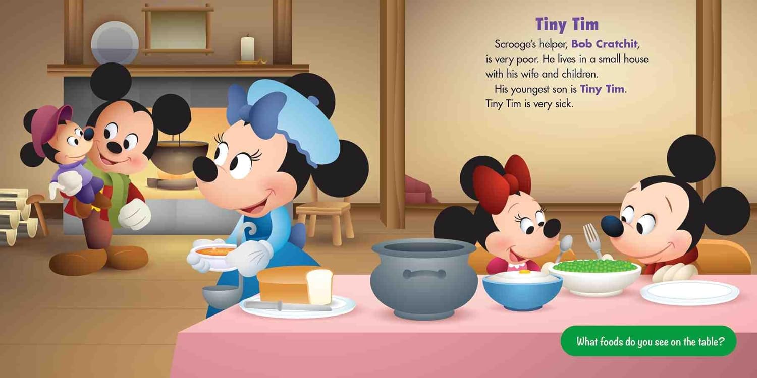 This retelling of Charles Dickens’s beloved Christmas classic is full of the baby-friendly faces of Mickey and his pals and baby-friendly themes, like kindess and sharing. Prompts on the page will encourage toddlers to engage with the story as they count the gold coins on Scrooge’s desk or name the colors on the Christmas tree.