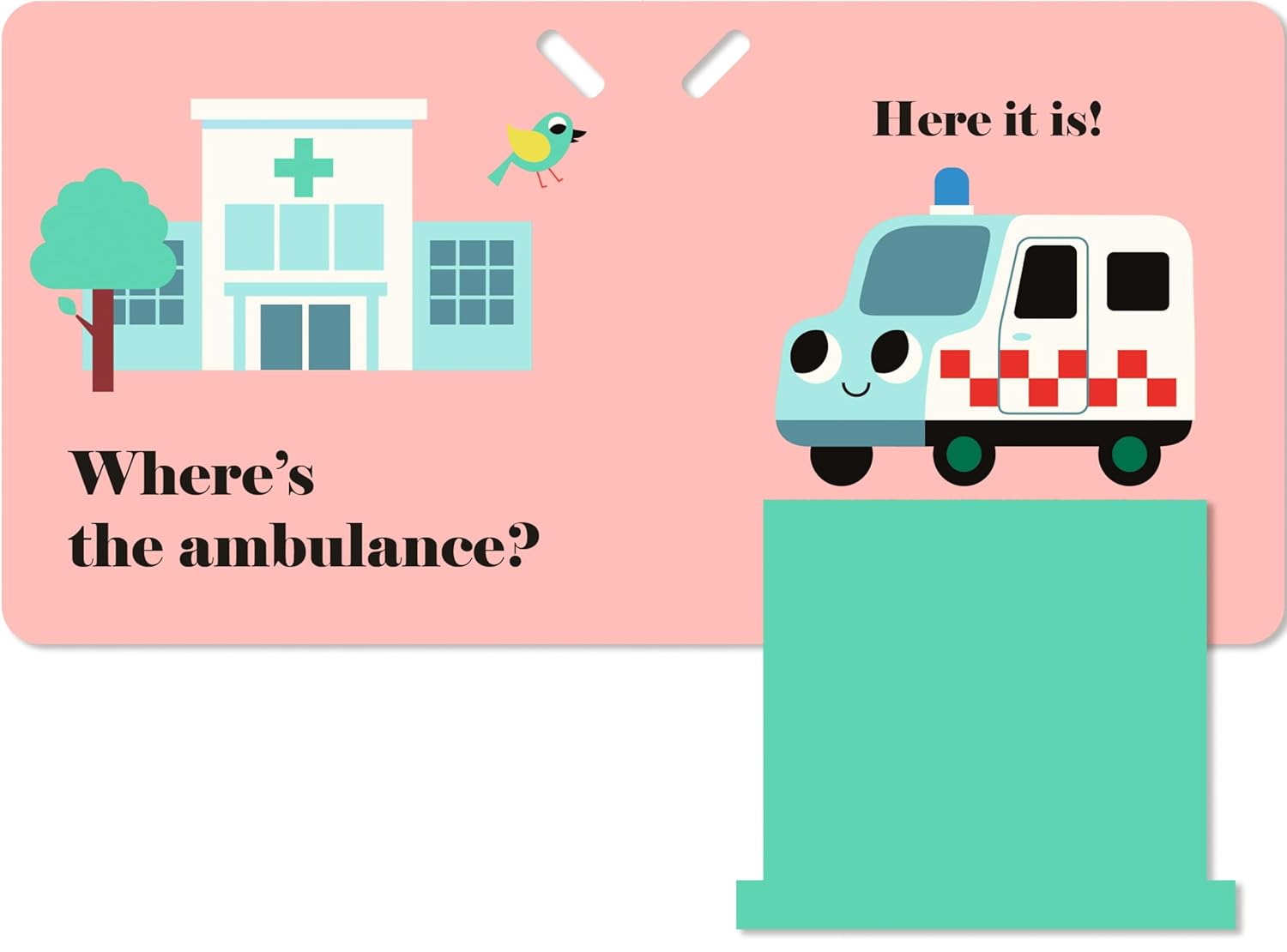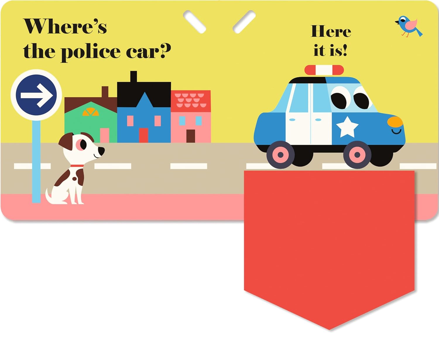 Delight the littlest emergency vehicle enthusiasts in this small-format stroller edition from the best-selling felt flap series, which has sold over two million copies. Lift the bright felt flaps to reveal a police car, an ambulance, a helicopter, and a fire truck! A mirror reveal on the final page and a sturdy, detachable hook-and-loop strap perfect for hanging from a stroller make this the ideal addition to any parent’s emergency entertainment kit.