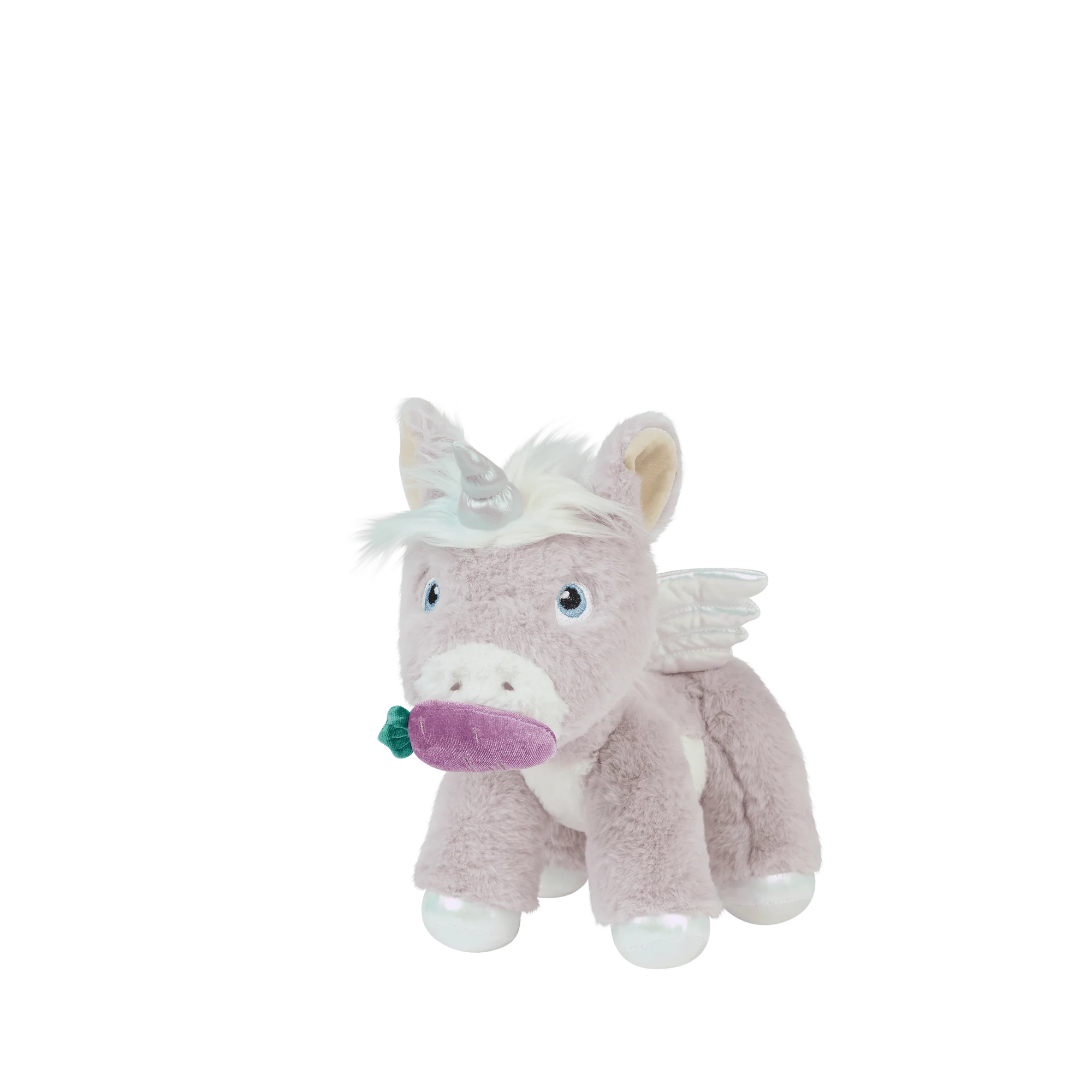 Crafted from the softest fabric, Glimmer is as cuddly as a cloud, and ready to make dreams come true! The magnetic mouth can hold their velvet carrot or carry their baby unicorn sidekick, making every play session a bit more enchanting.