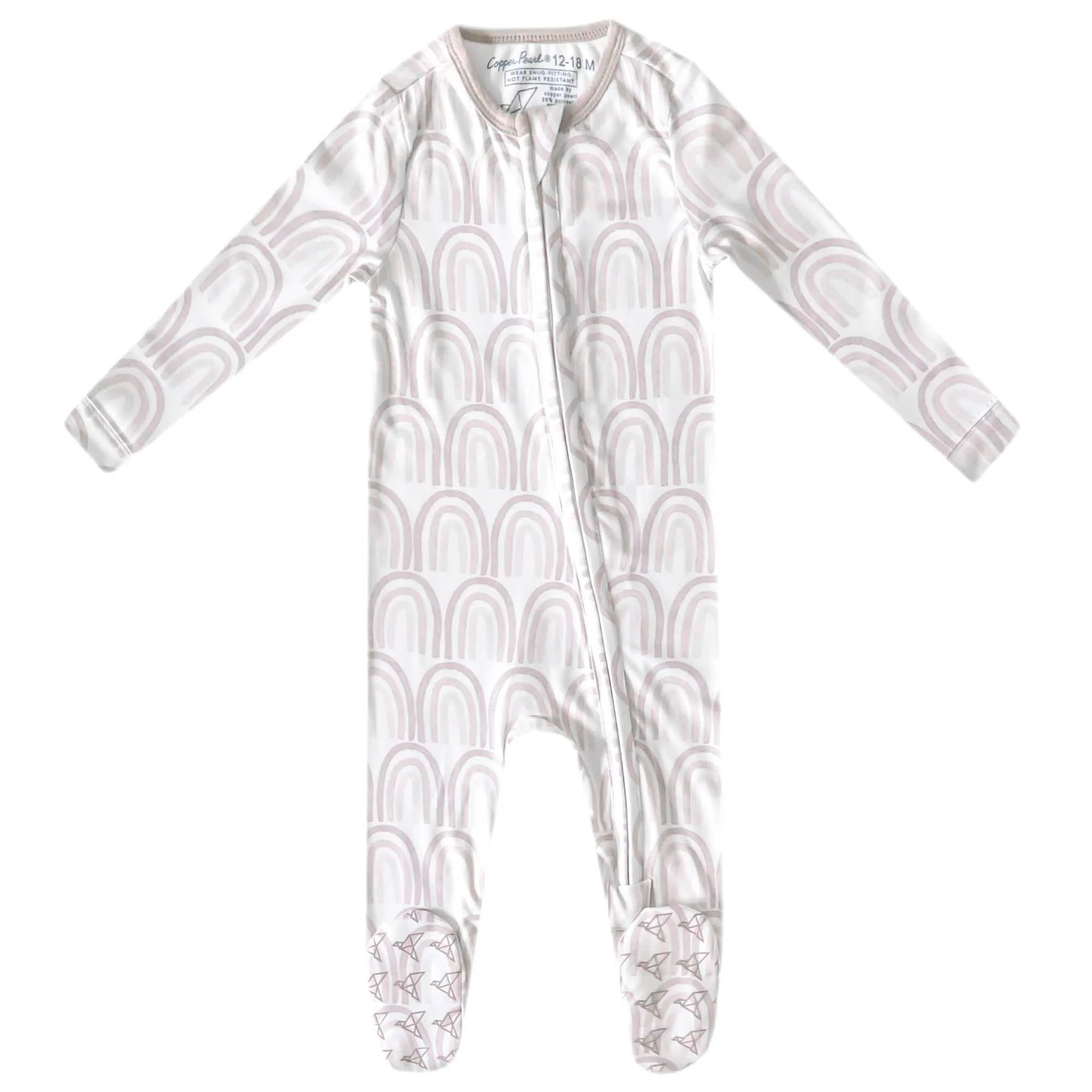 We’ve dreamed up the perfect footie pajamas, featuring buttery soft fabric, a tag-free design, and a two-way zipper for easy changing. Pick your favorite Copper Pearl print for a stylish night’s sleep!