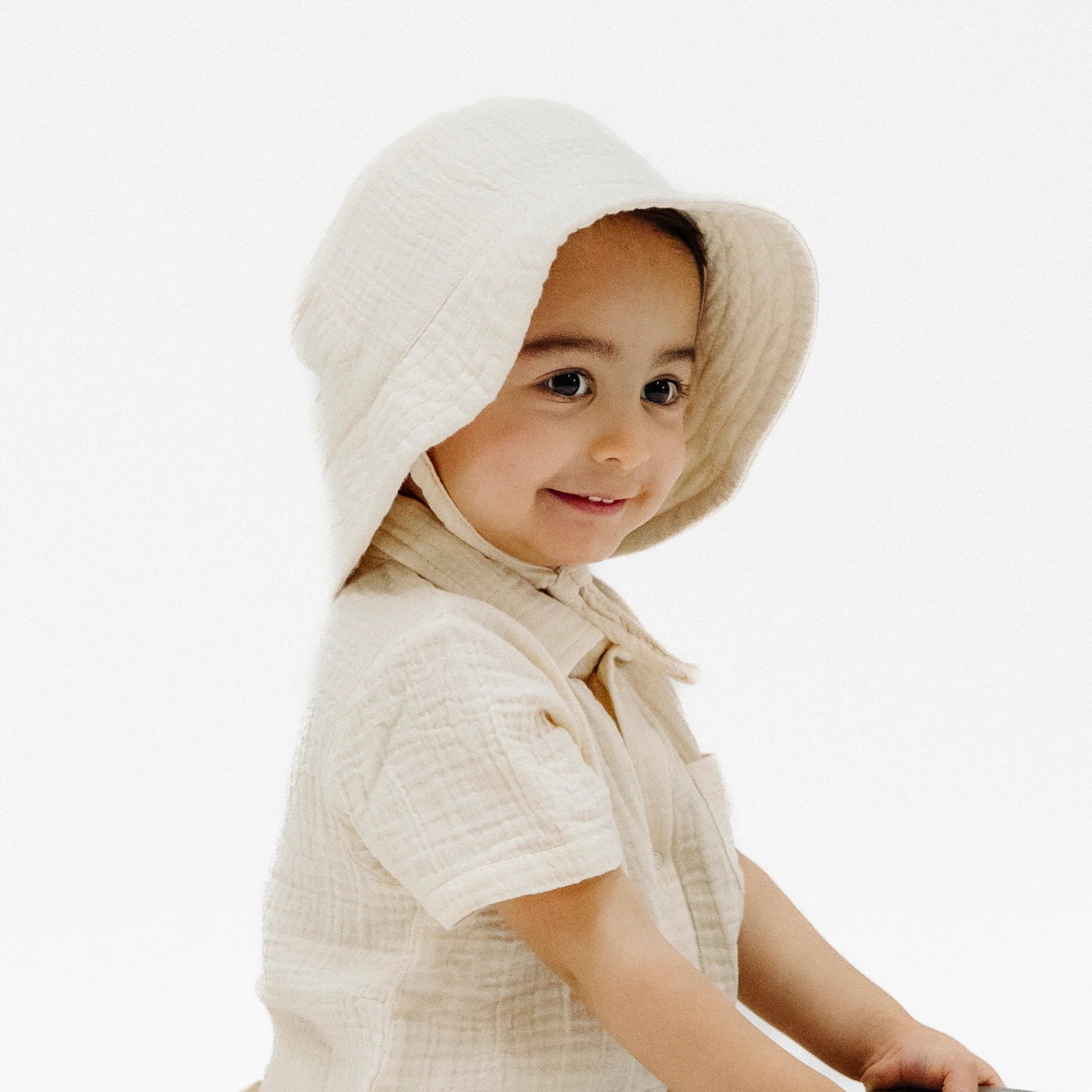 Get your little one ready for sunny adventures in our Wide Brim Sunhat! Made from soft, breathable organic muslin, this hat is the perfect accessory for those bright, sunny days. The wide brim offers extra sun protection, while the soft fabric keeps your baby comfortable. Whether it’s a stroll in the park or a beach day, this hat will keep them cool and stylish.