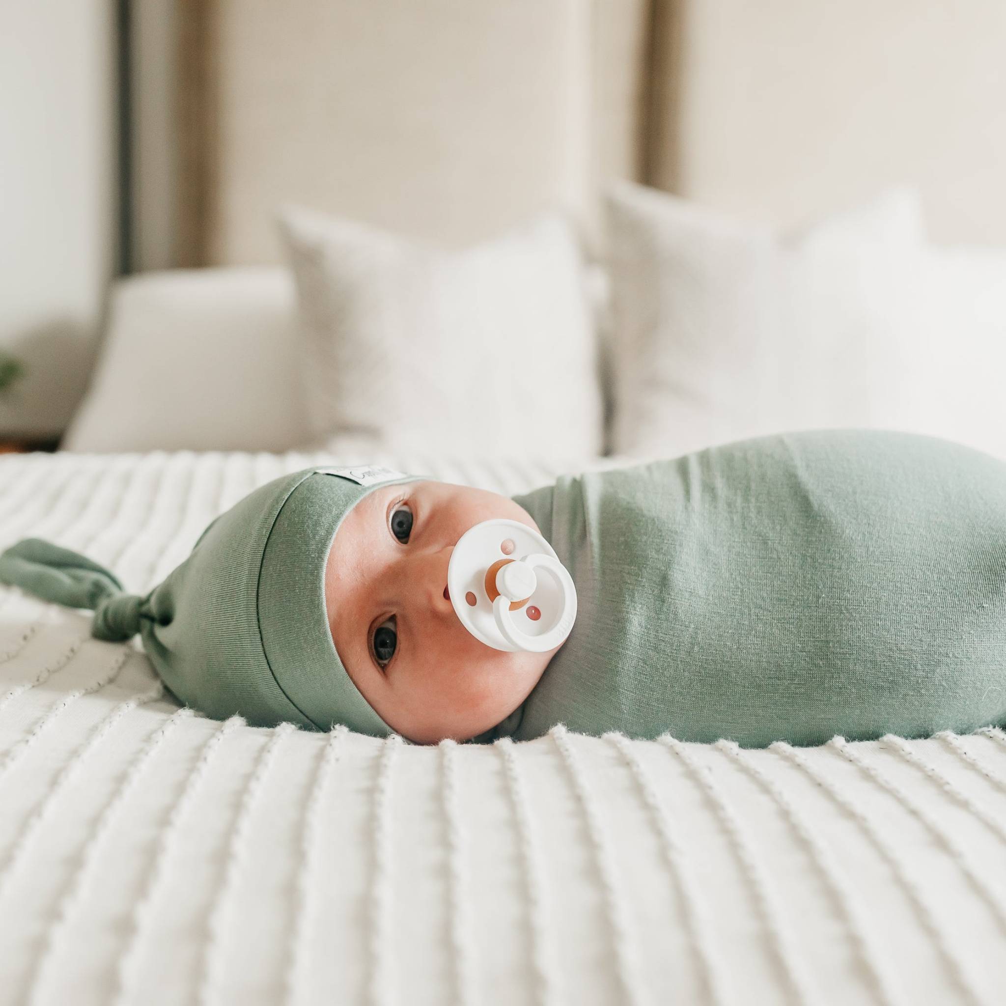 Their trendy top knot hats are designed in the same prints and patterns seen on our beloved swaddle blankets.  They make a perfect pair!\