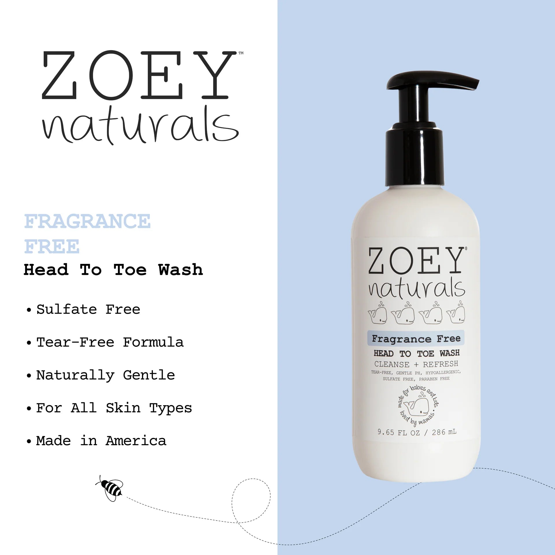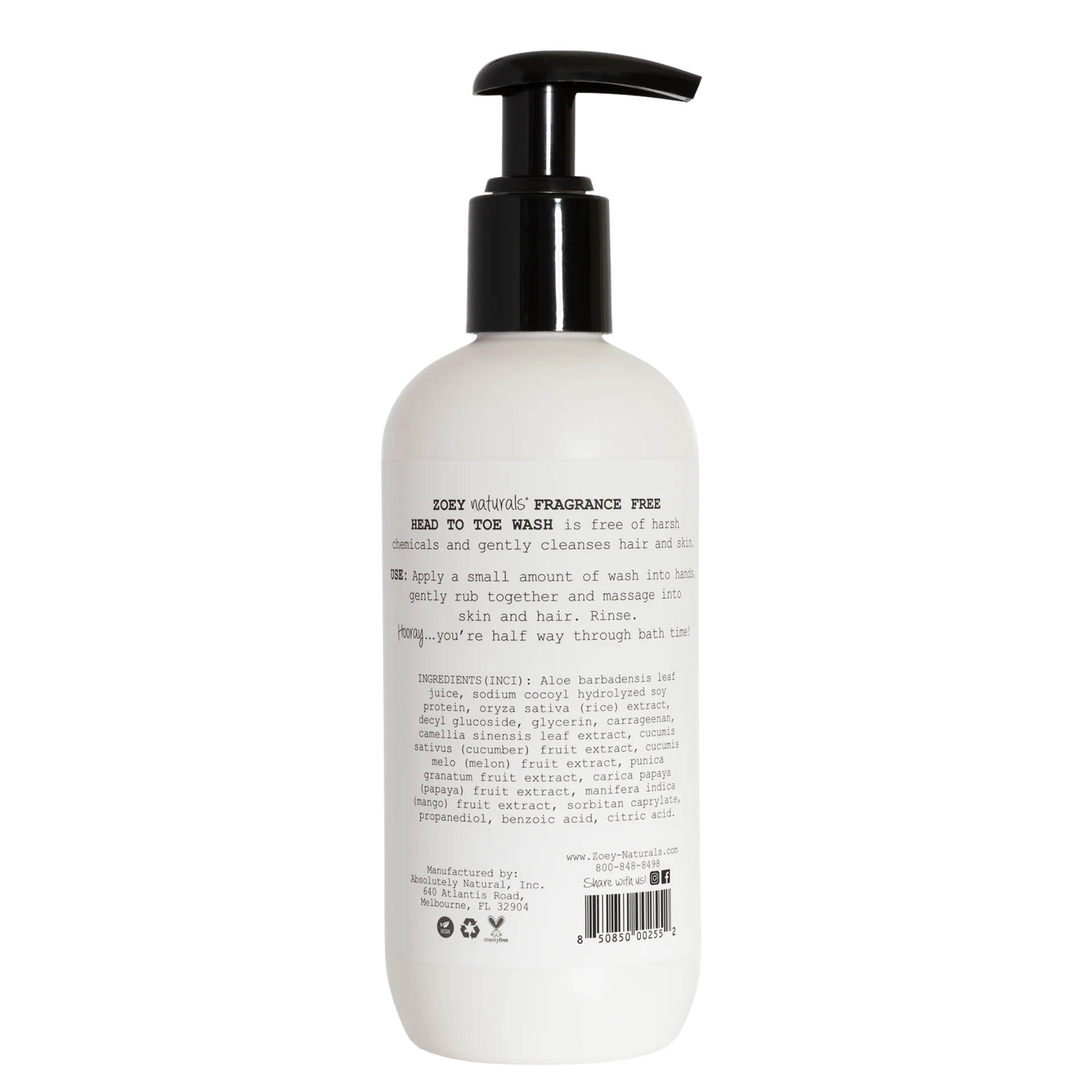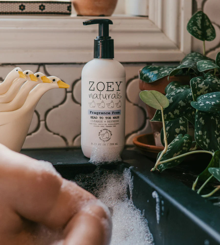 Our 2-in-1 Fragrance Free Head To Toe Wash is crafted for your baby’s delicate skin and hair. Our ultra-gentle, tear-free shampoo and wash is designed to match your baby’s natural pH balance, ensuring a mild, soothing cleanse without harsh chemicals, fragrances, or dyes.
