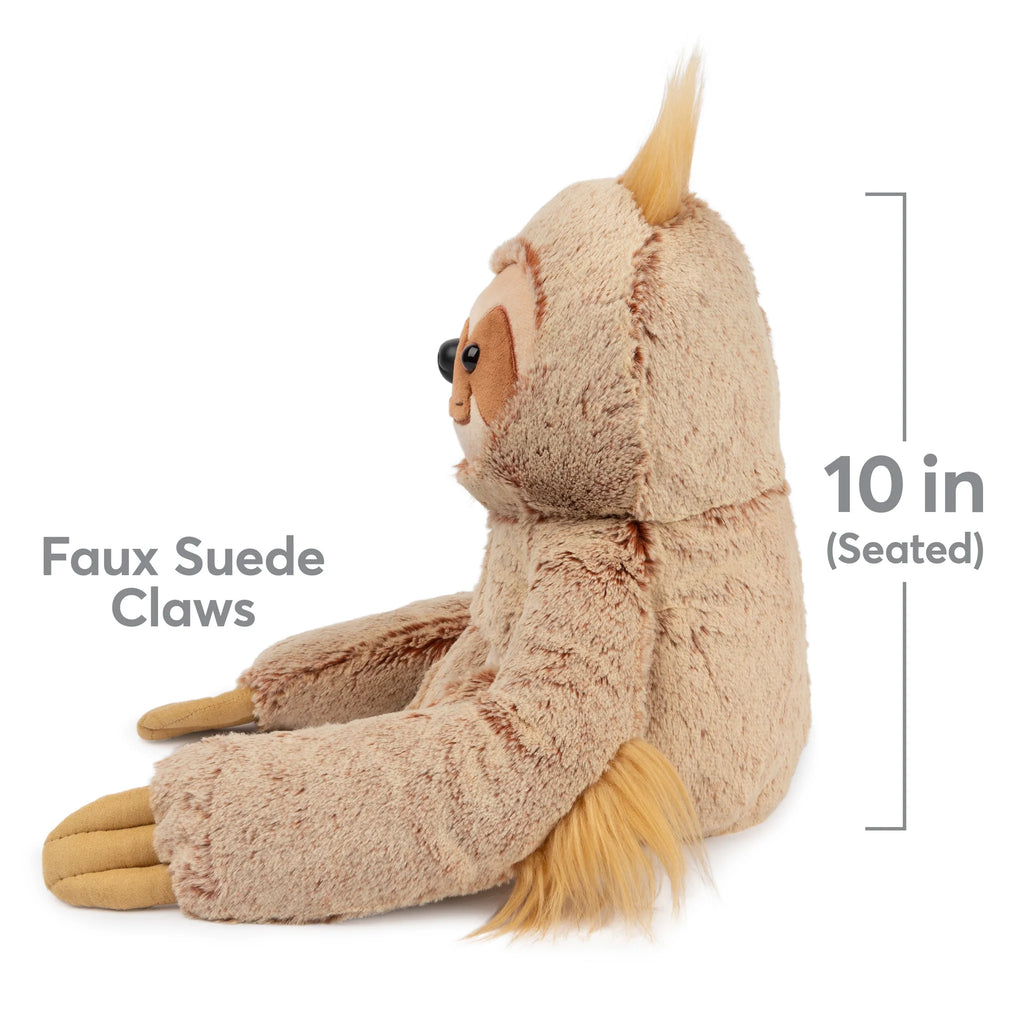 Augie is an adorable modern sloth with a big personality sure to make you smile! Sitting at 15”, this sweet sloth features ultra-soft, two-tone cream-and-copper plush and extra tufts of longer tan plush poking from his head and elbows. His whimsical design also features short legs, extra-long arms, a tan tummy patch, and faux suede claws for a timeless touch. His sweet, friendly embroidered smile and warm brown eyes give Augie a charmingly huggable look collectors and nature enthusiasts will love; plus, his bent arms even wrap back around you with every hug! This cream-and-copper cutie is perfect for collectors, kids, and wildlife enthusiasts alike.