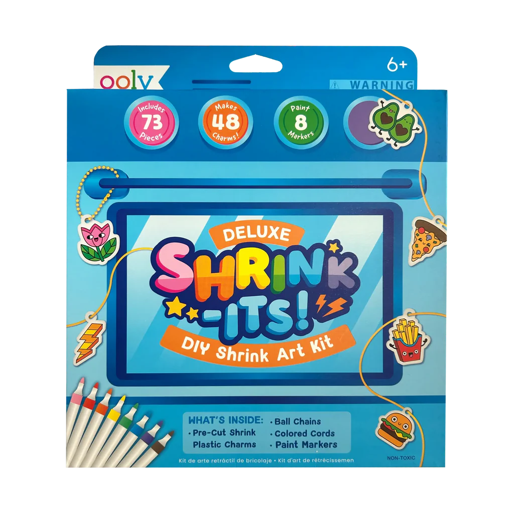 Get ready for big creativity with the Shrink-Its Deluxe DIY Shrink Art Kit! This kids craft kit is packed with everything needed to design, color, and shrink your own unique charms. Simply draw or color on the pre-cut shrink art sheets and watch them shrink down into miniature masterpieces when baked.