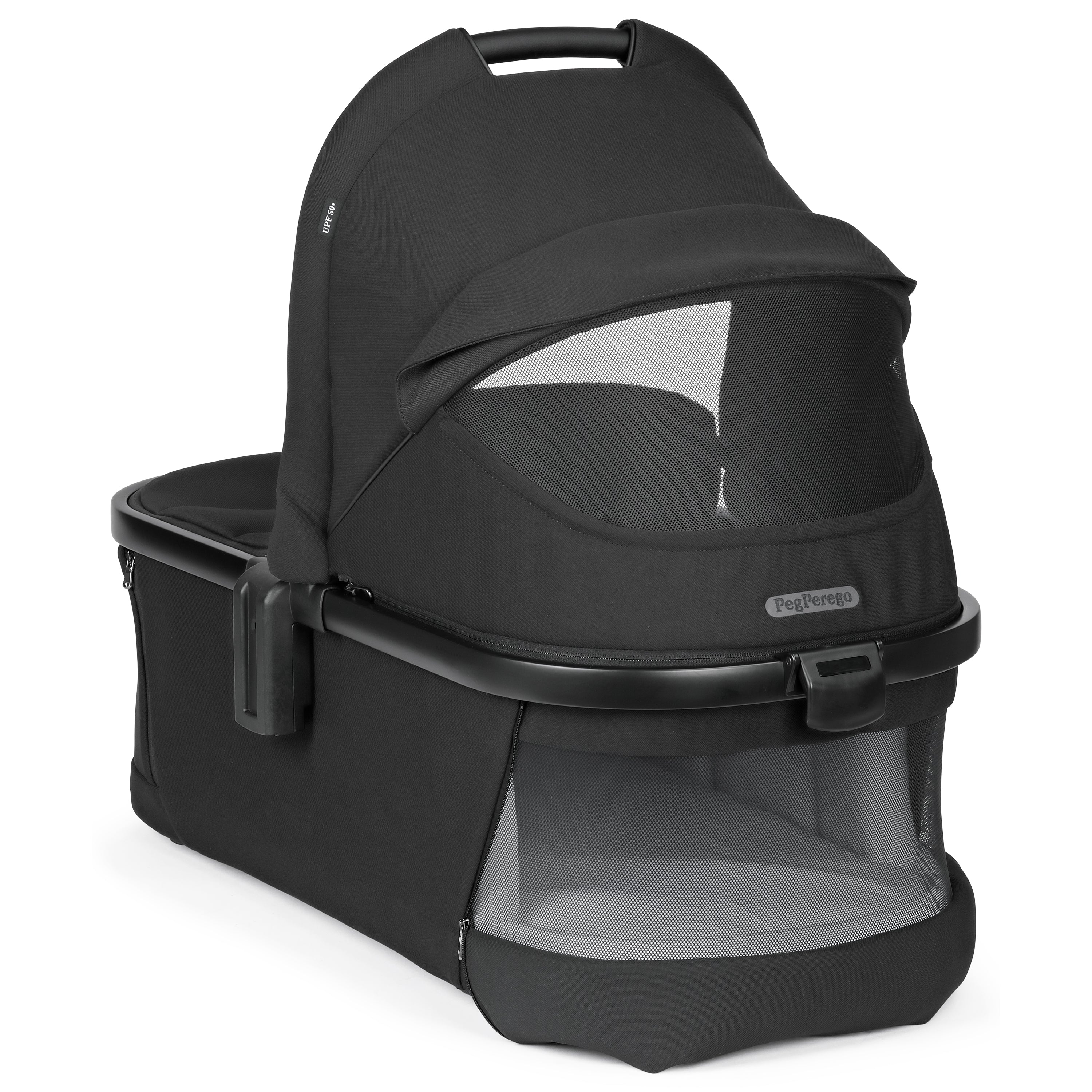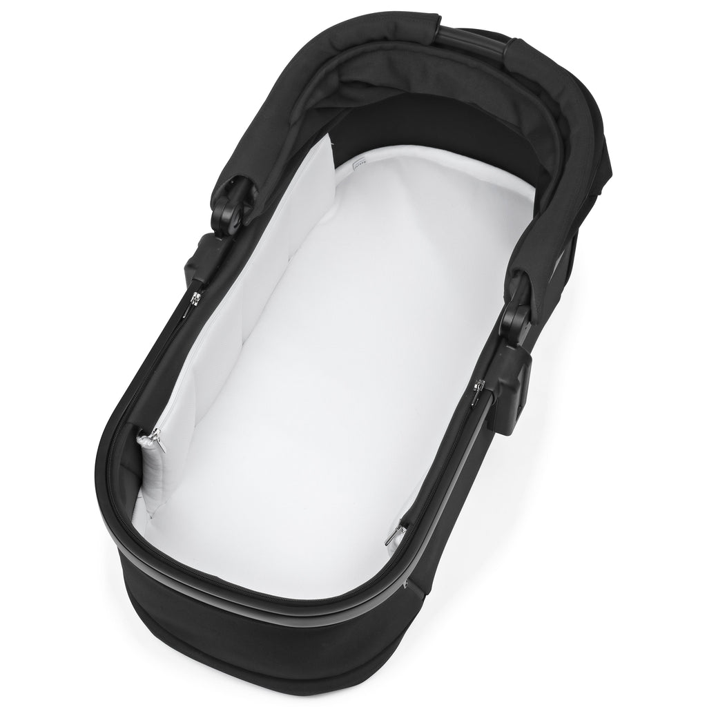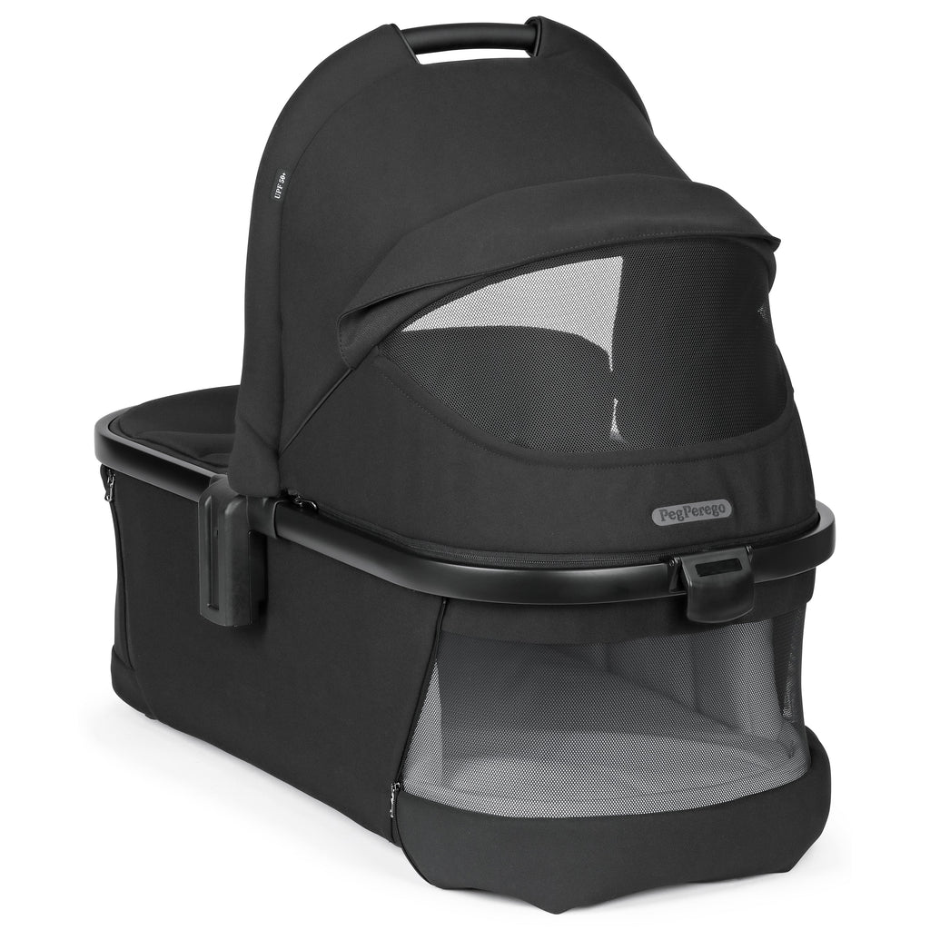 The Bassinet welcomes your baby with comfort and fashion from the very first days. This innovative bassinet can fold for carrying and storing. 3 large mesh windows provide optimal views and airflow for the baby at every angle. It also has a removable mattress and is approved for overnight sleeping.