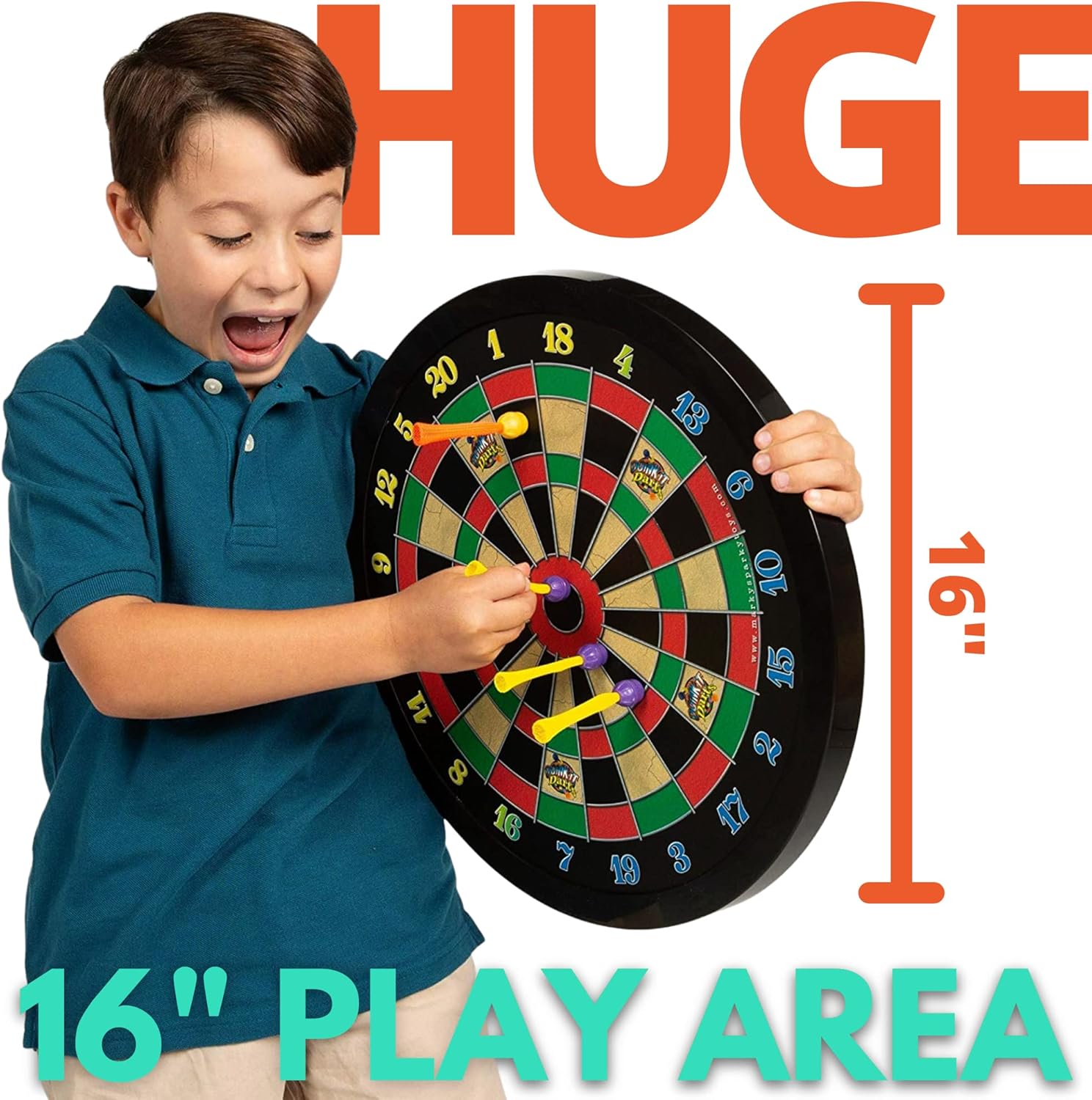 • DURABLE & STRONG FOR YEARS OF PLAY: 1- 16" Board, 6 - Safe Magnetic Darts (3 Each of 2 Colors). Perfect for a game room, dorm, kids play area or outdoor patio. Adults and kids ages 6 years and older.