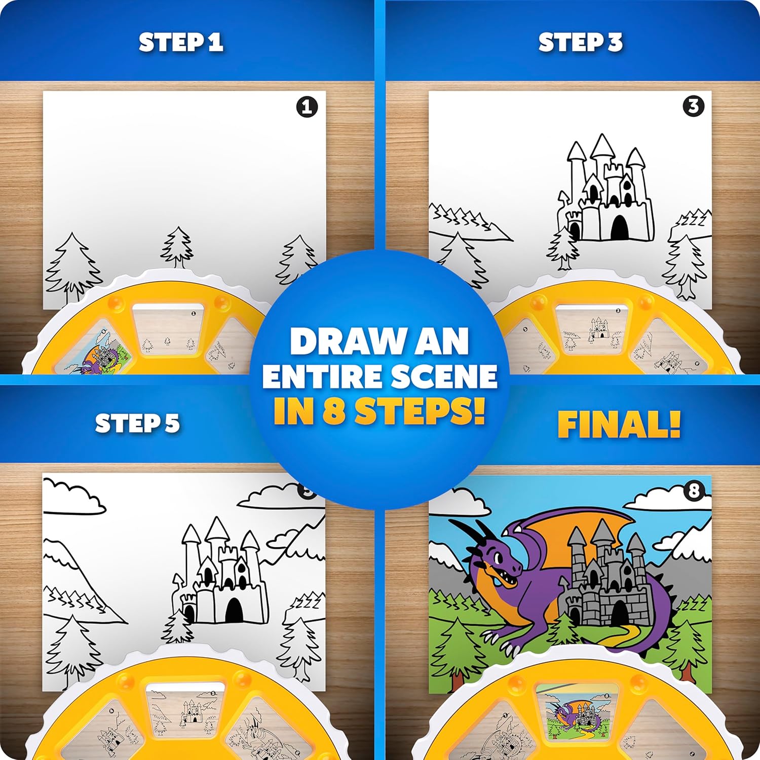 EVERYTHING INCLUDED - This all-inclusive drawing projector kit has 9 colorful markers and 4 image discs, one of which is a step-by-step tutorial on how to draw a complete fantasy scene Kids can also use extra art supplies they already have at home