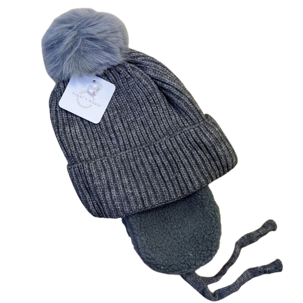 Sugar + Maple Sherpa Pom Toddler Hat | Grey
