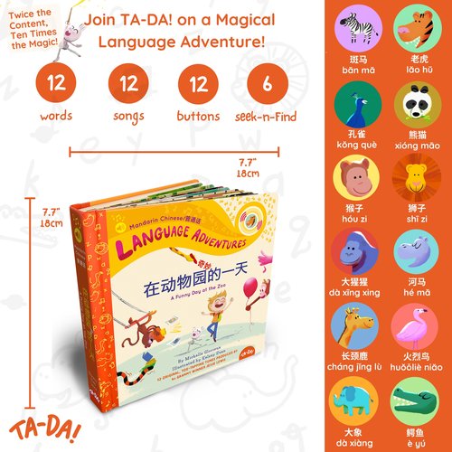 Our multi-award winning Language Adventures series makes language exposure effortless and fun for babies and children up to age 5+. Just touch the pages with your finger—and real kids and teachers from our partnering schools say words in their languages! A world of vibrant color, sound, and adventure makes language learning a joyful, pressure-free experience. These books start as a cozy read-aloud in your arms and become a playful, independent discovery as children develop fine motor skills, early literacy, and a love for languages.