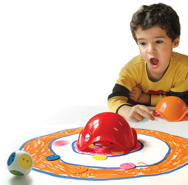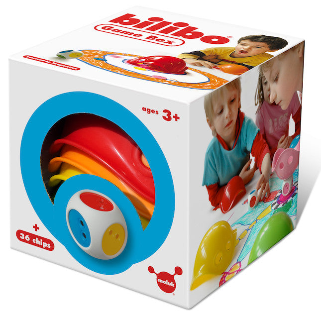 With six bilibo minis, an adjustable die, and 36 vibrant game chips, kids and parents have everything they need to invent or reinvent all kinds of amazing games. Test your skills by tossing the chips into their matching bilibos, or balancing them on your nose, or rolling them the farthest. Draw out a creative game board and use the die to play - The chips can be popped in, out, and arranged to adjust the odds and you can even hide little treasures in the cavities behind each side. Or, forget gameplay and just have fun stacking, building, threading, exploring, and discovering endless ways to play and have fun! With the Bilibo Game Box, creativity always wins.