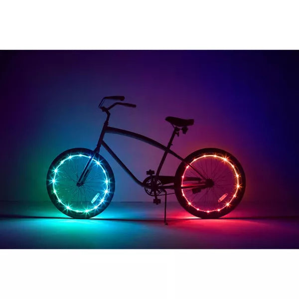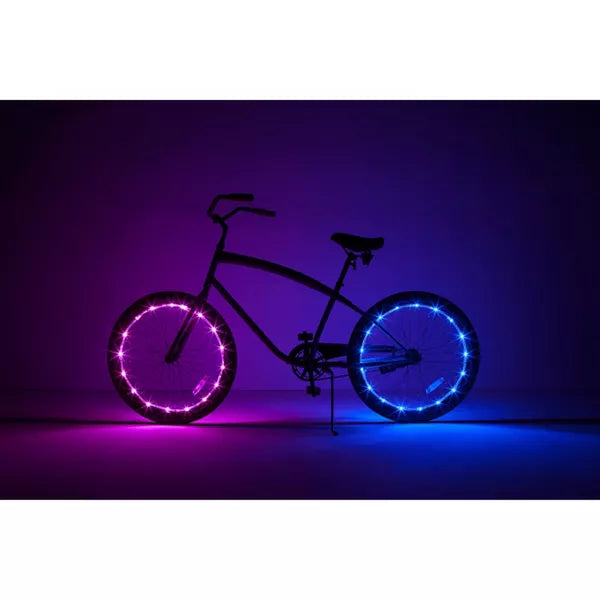 Wheel Brightz Color Select uses 20 MicroLEDs lights to cycle through the rainbow or let's you stop on your favorite color! Each package includes one light string in weather-resistant tubing to fit one standard 20-29 inch wheel. Also includes attached battery pack and 6 zip ties for installation. Batteries not included.