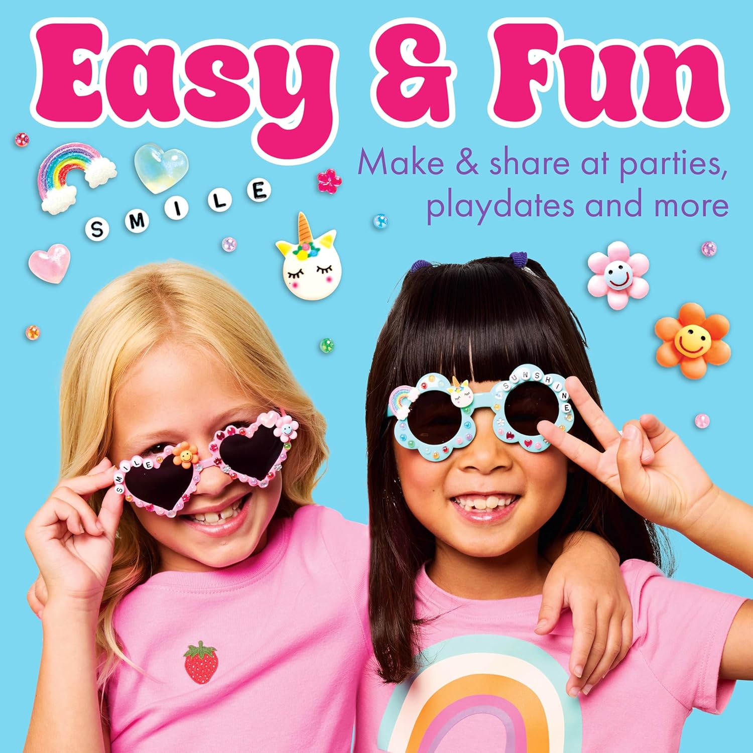 COMPLETE CRAFTS FOR GIRLS: Add sparkle, style, and fun to your sunny adventures with this complete arts and crafts for girls ages 6-8+! Design 2 trendy sunglasses with pearl beads, rhinestones, letter beads spelling "SUNSHINE" and "SMILE," and adorable charms. Perfect for girl toys age 6-7 years old, toys for girls, and kids activities, this kit is great for solo crafting, playdates, or group fun