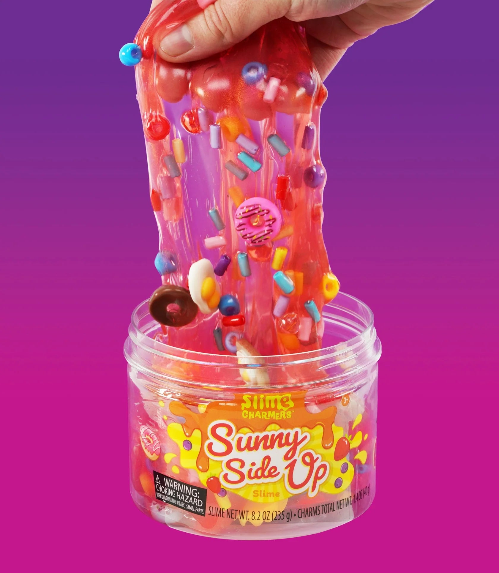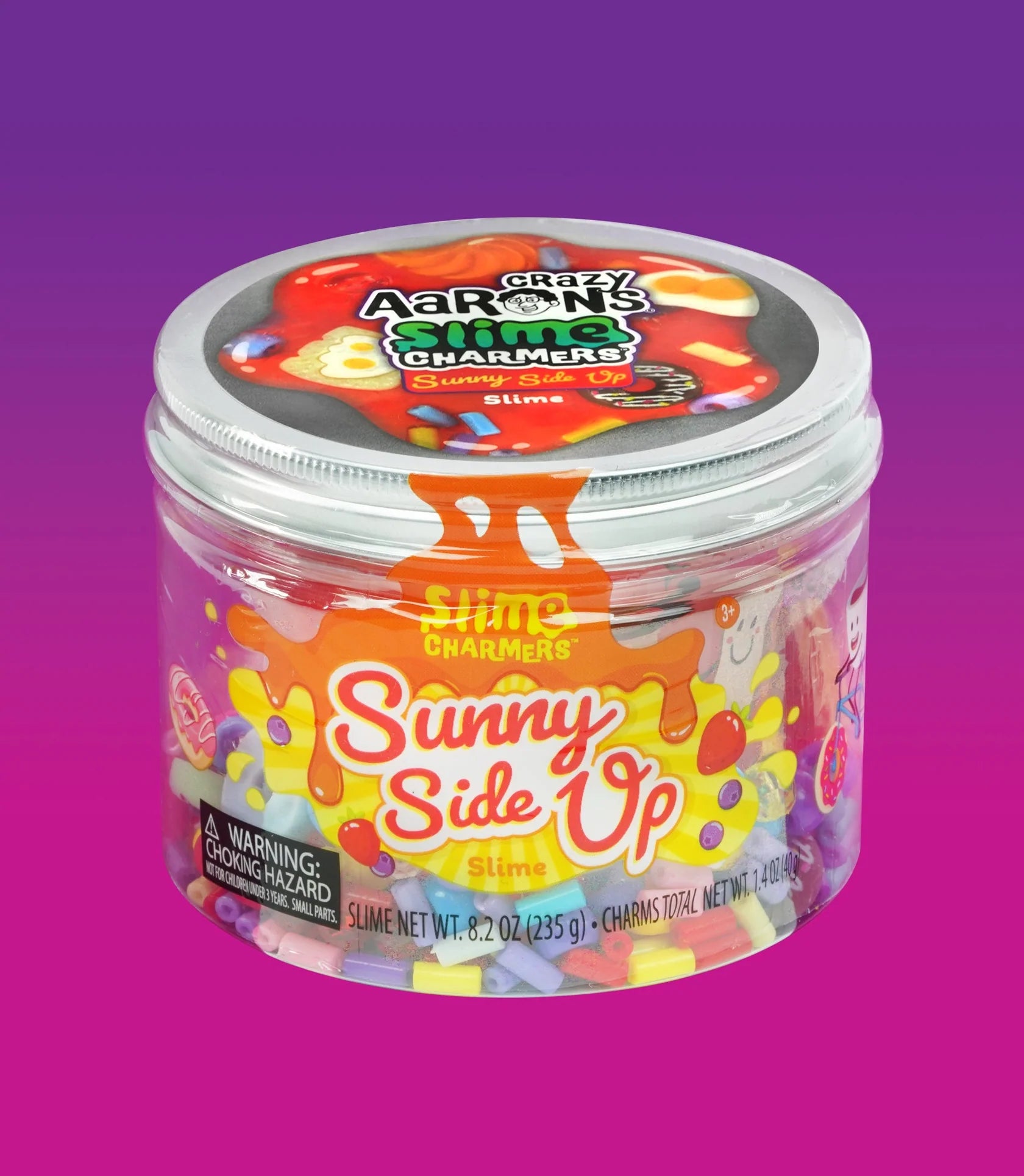 Hear the sizzle and awake the senses with the new Crazy Aaron’s® Slime Charmers™ Sunny Side Up. This classic red slime is filled with all the charms to start your day off right. Go savory with fried eggs or satisfy your need for sweets with a frosted donut or croissant. Mix, pick and flip these colorful charms to create your own egg-cellent experience with Slime Charmers™ Sunny Side Up.
