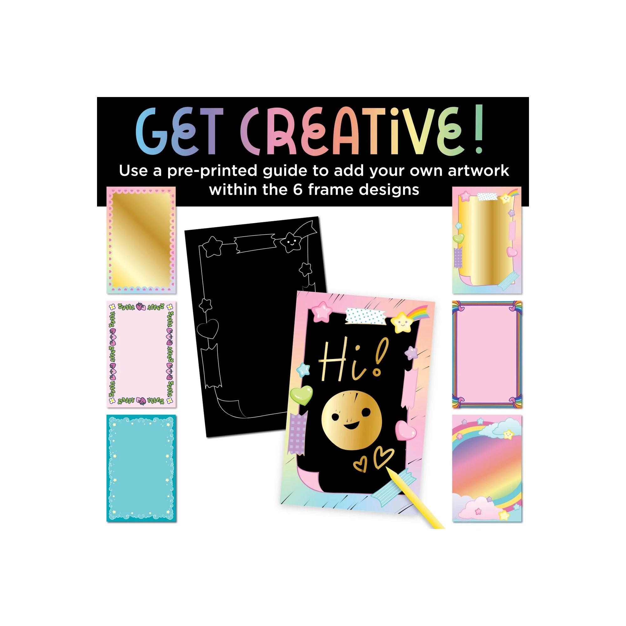 Personalize your rainbow scratch art with six open-ended designs, just add imagination!