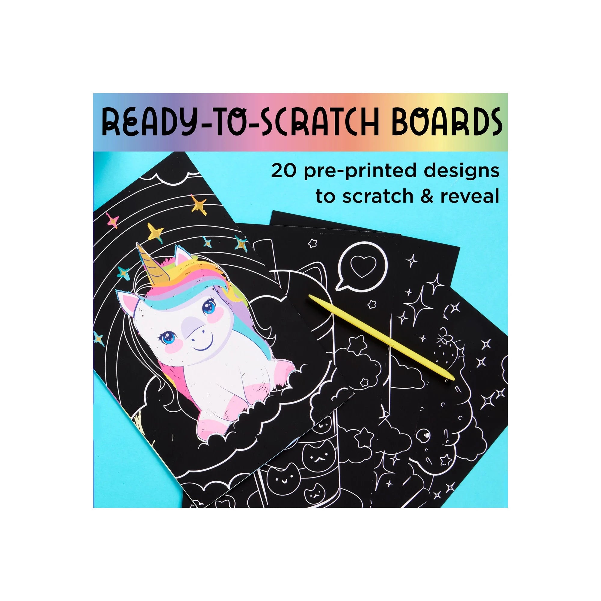 Scratch and reveal with 20 fun rainbow scratch art papers and two scratching tools