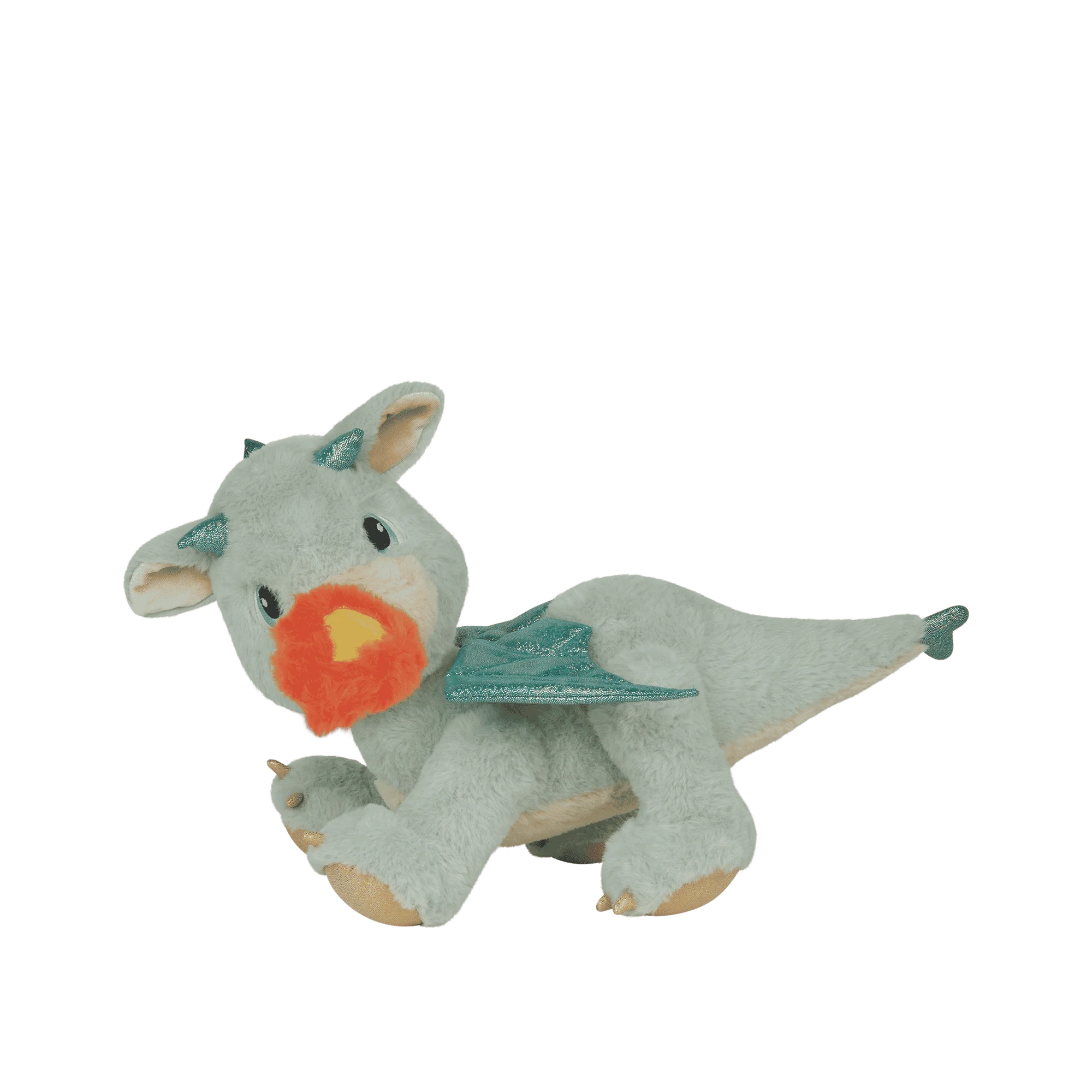 Meet Blaze, the Dinkum Dragon who soared straight out of the Rainbow Realm and into your little one’s arms! With soft sage-green fur, glittering wings, and bright embroidered eyes, Blaze is every bit the fiery friend dreams are made of.