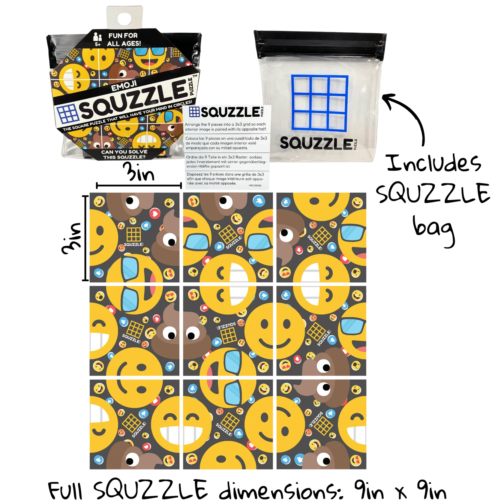Discover Squzzle Puzzles – a captivating 9-piece brain teasing square puzzle that will have your mind in circles! Arrange and rearrange the pieces into a 3x3 grid so each interior image has a match with its opposite half. Twist and turn your way through this mesmerizing square puzzle that will have your mind spinning!