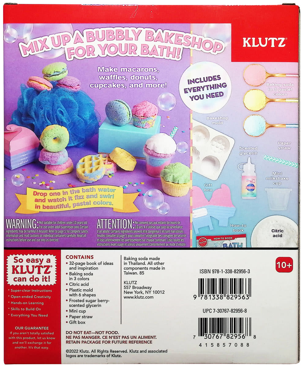 Fizzy fun with a bakery twist! Craft up to 12 bath bombs that fizz in the tub, with all the supplies you need. Simply mix the pre-colored baking soda, citric acid, and glycerin, and mold them into one of 6 shapes. Adorable pastel projects include a donut, macaron, cupcake, waffle, and a milkshake in a tiny, to-go cup. Package your favorite bath bombs in an easy-to-fold gift box to create the perfect presentation.