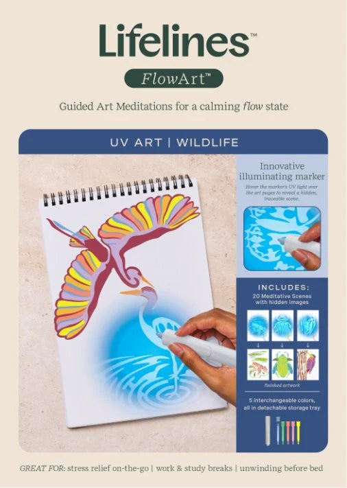 Hover the marker's UV light over the page to reveal hidden, traceable scenes; then, use the marker to fill in each section, bringing the beautiful scene to life.