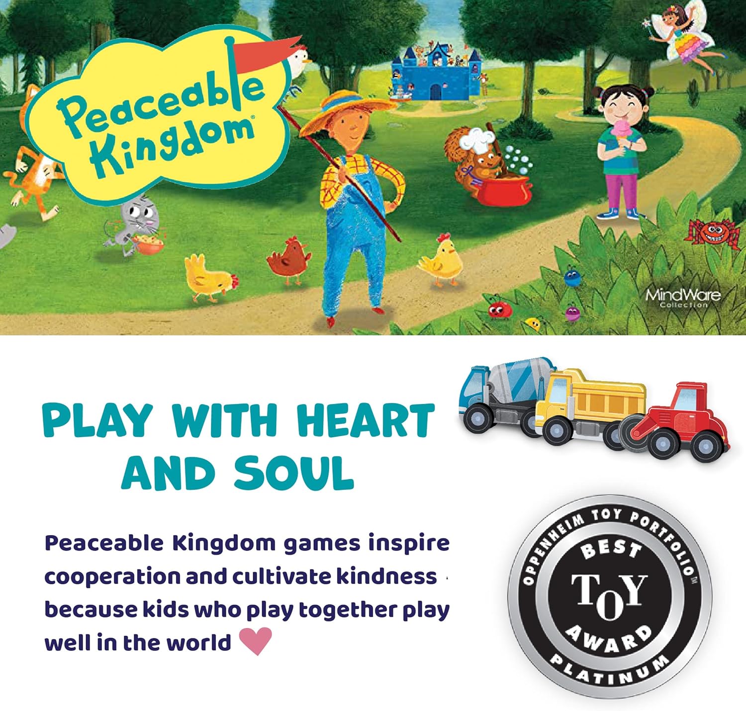 • Heart & Soul: Peaceable Kingdom puzzles, board games, toys, and activities inspire cooperation, kindness and caring. Build connections as you practice teamwork through imaginative play!