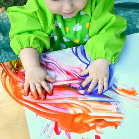 Unleash their inner Picasso with 6 super-washable, bright finger paints in easy to squirt tubes! 6 bold colors are all you need to mix and blend rainbows, ocean waves and everything the little ones dream up! The classic, tactile art activity brings joy for them, and the washability makes it worry-free for adults. Easy to clean off surfaces with soap and water. Non-staining!