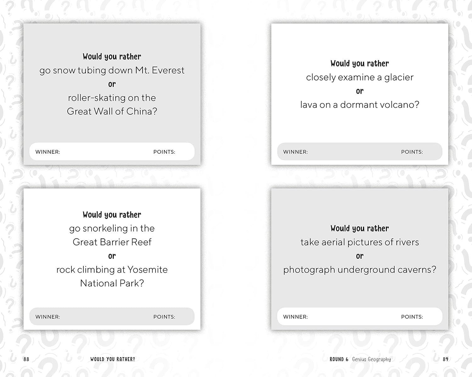 Whether a gift for yourself, a family member, or a good friend, Would You Rather? Family Challenge! Edition will keep everyone entertained for hours!