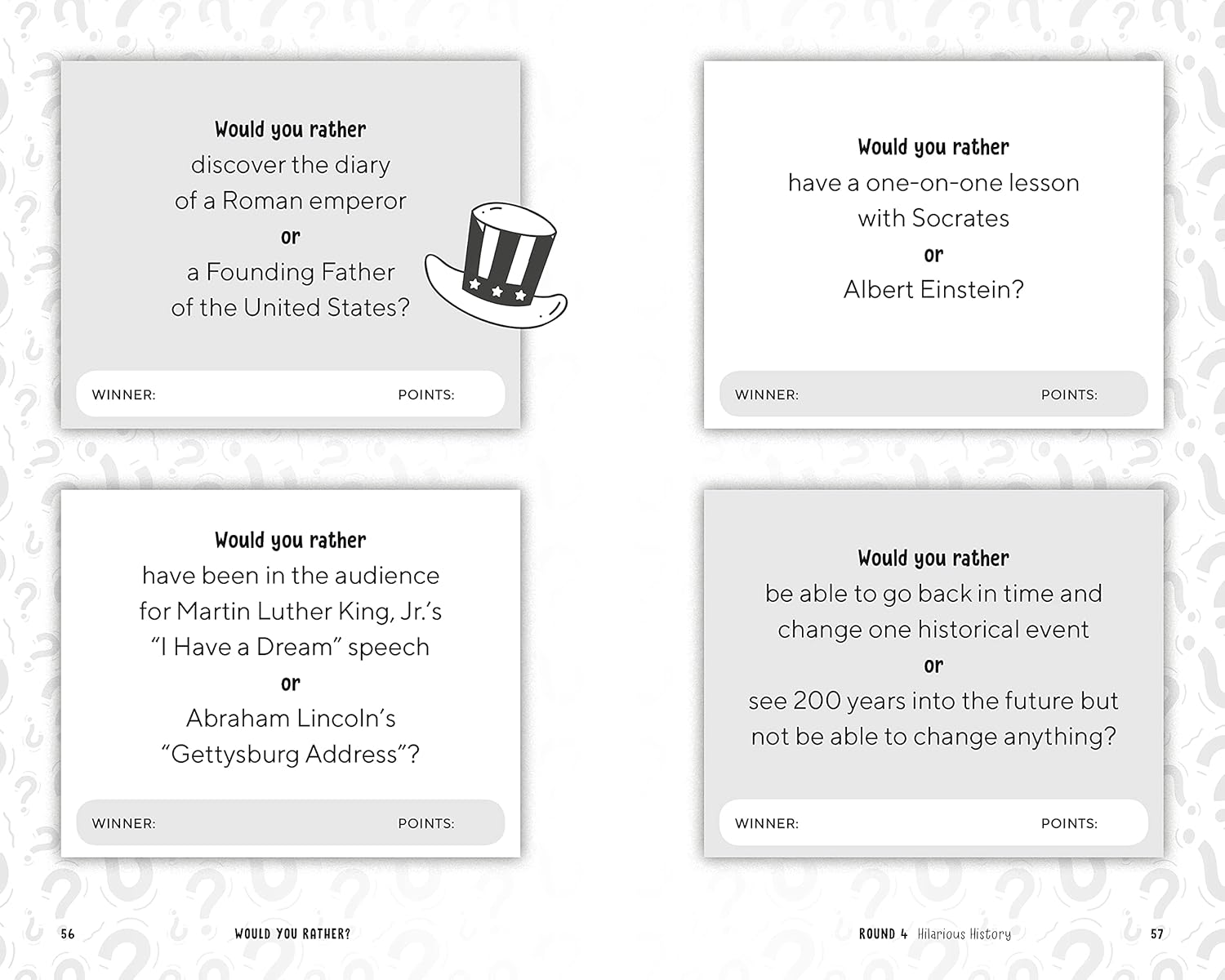 Can you beat everyone in your family at this awesome “Would You Rather” game? Can they beat you? Share some giggles with 160+ silly, fun questions that make you think, learn, and laugh while trying to come out on top of the competition.
