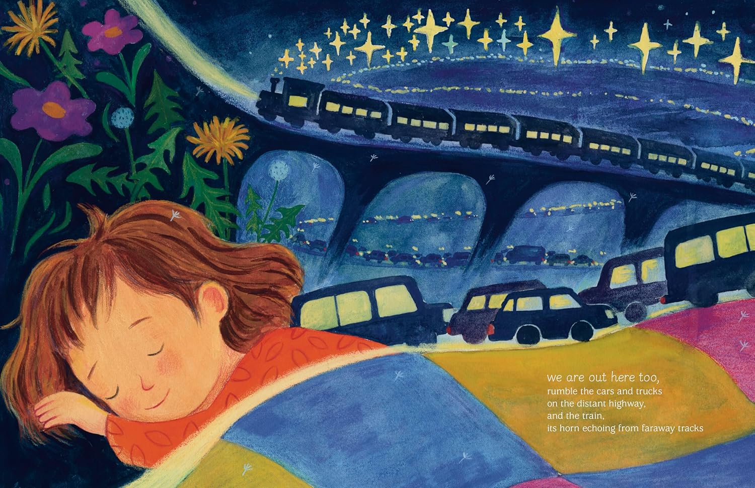 Sometimes bedtime feels like a dark cave in the gloomy woods—like it’s about to be you and no one else until morning. But this gentle, lovely book helps children remember that they are never alone. Not only is a parent probably right down the hall, but they are also among animals and neighbors, near the rumble of cars, the twinkle of stars, and even the reassuringly humming fridge.