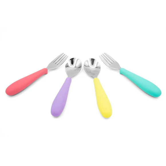 • Smooth spoon and fork edges help limit accidental ouchies.