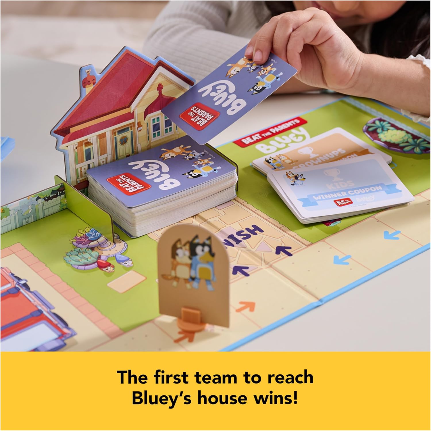 Family Board Game: Beat the Parents: Bluey Edition brings kids & parents together as they go head-to-head in trivia & challenges based on the hit TV series, Bluey, to take the title of household champion