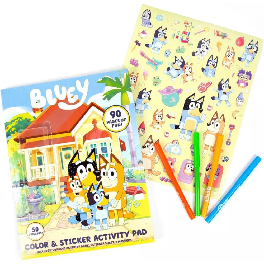 Puzzles to solve, words to unscramble, stickers to place, outlines to trace — the Bluey Coloring & Activity Book is filled with 90 pages of fun!