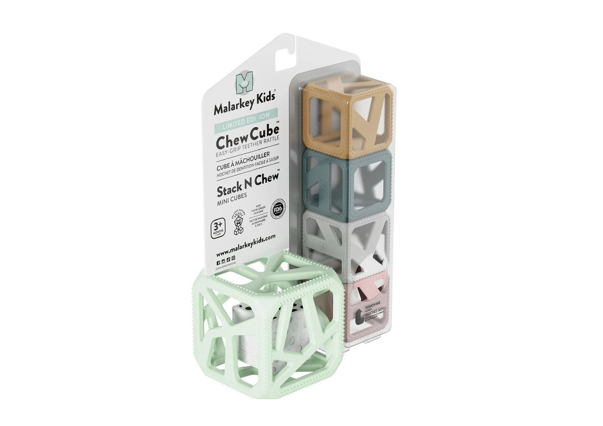 A beautifully packaged, gender-neutral gift set featuring two of Malarkey Kids’ best-selling teething toys. Includes: 1 x Chew Cube – a lightweight rattle and teether in one with soft, textured silicone and a gentle sensory rattle 4 x Stack N Chew textured cubes made from food-grade silicone. Designed for teething, sensory play, and fine motor development. Ideal for baby showers, first birthdays, and modern registries.