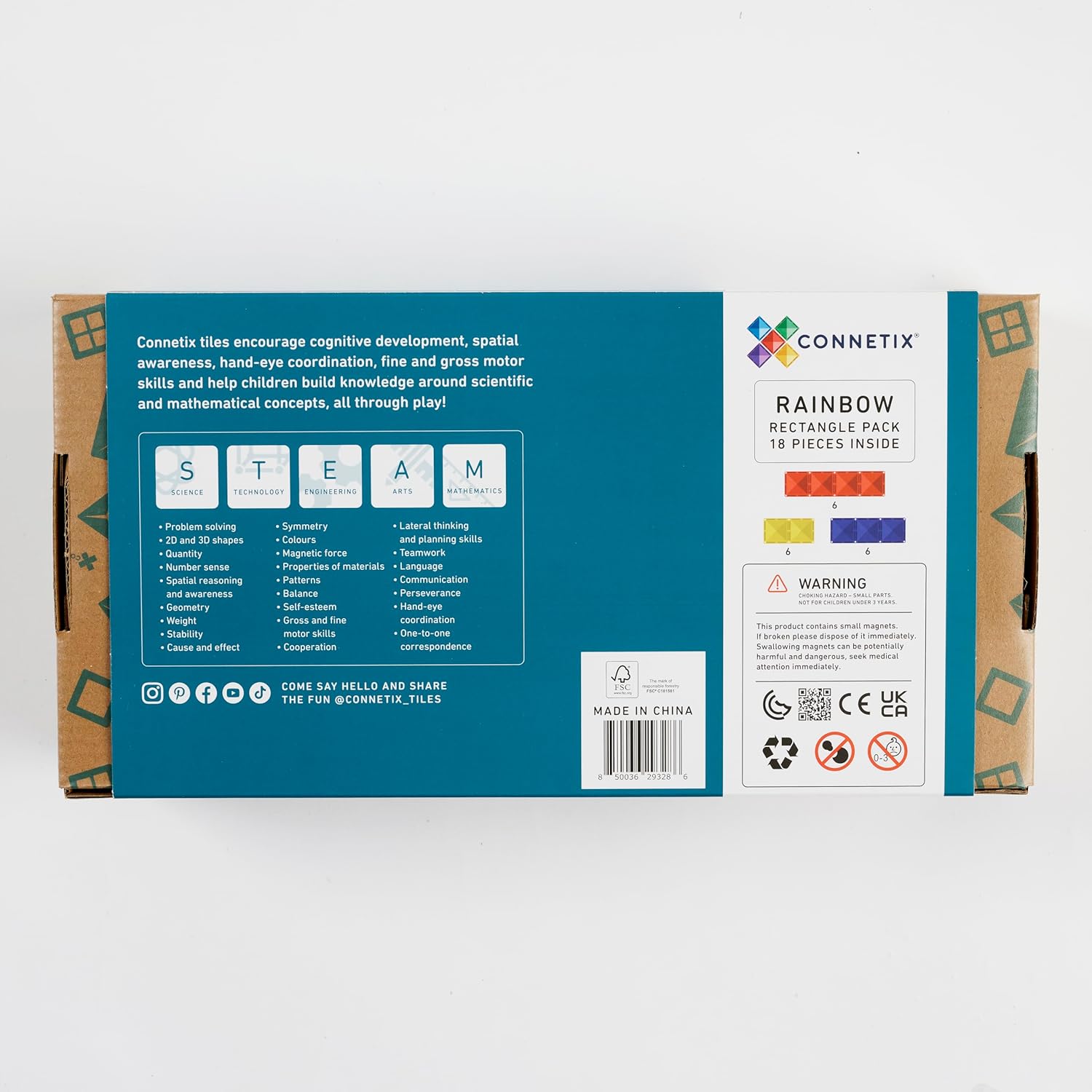 THE IDEAL GIFT – Compatible with the entire Connetix range as well as other leading magnetic tile brands, the CONNETIX 18 Piece Rainbow Rectangle Pack is the perfect gift to bring new possibilities to magnetic tile play.