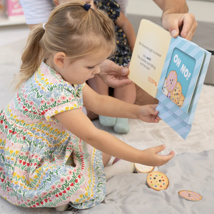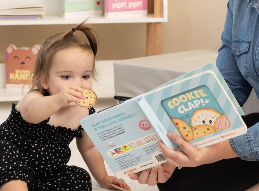 Clap your hands if you love cookies! This interactive board book invites children to clap as they count in order to engage their brains AND their bodies! Count and clap your way from ONE thru FIVE with this fantastic educational book until... OH NO! Suddenly, the cookies all fall out and you have an educational toy on your hands instead!