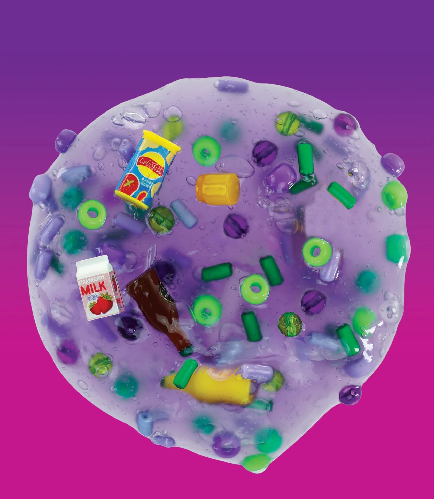 Look no further, we got what you need with the new Crazy Aaron’s® Slime Charmers™ Mini Mini Mart.  Looking for soda, we got it.  Milk, no problem…its all here in this classic purple slime.  Pick what you need or grab everything you can and mix it to create a unique slime shopping experience.  Fill your slime and charms to the top of the shopping cart with Slime Charmers™ Mini Mini Mart.