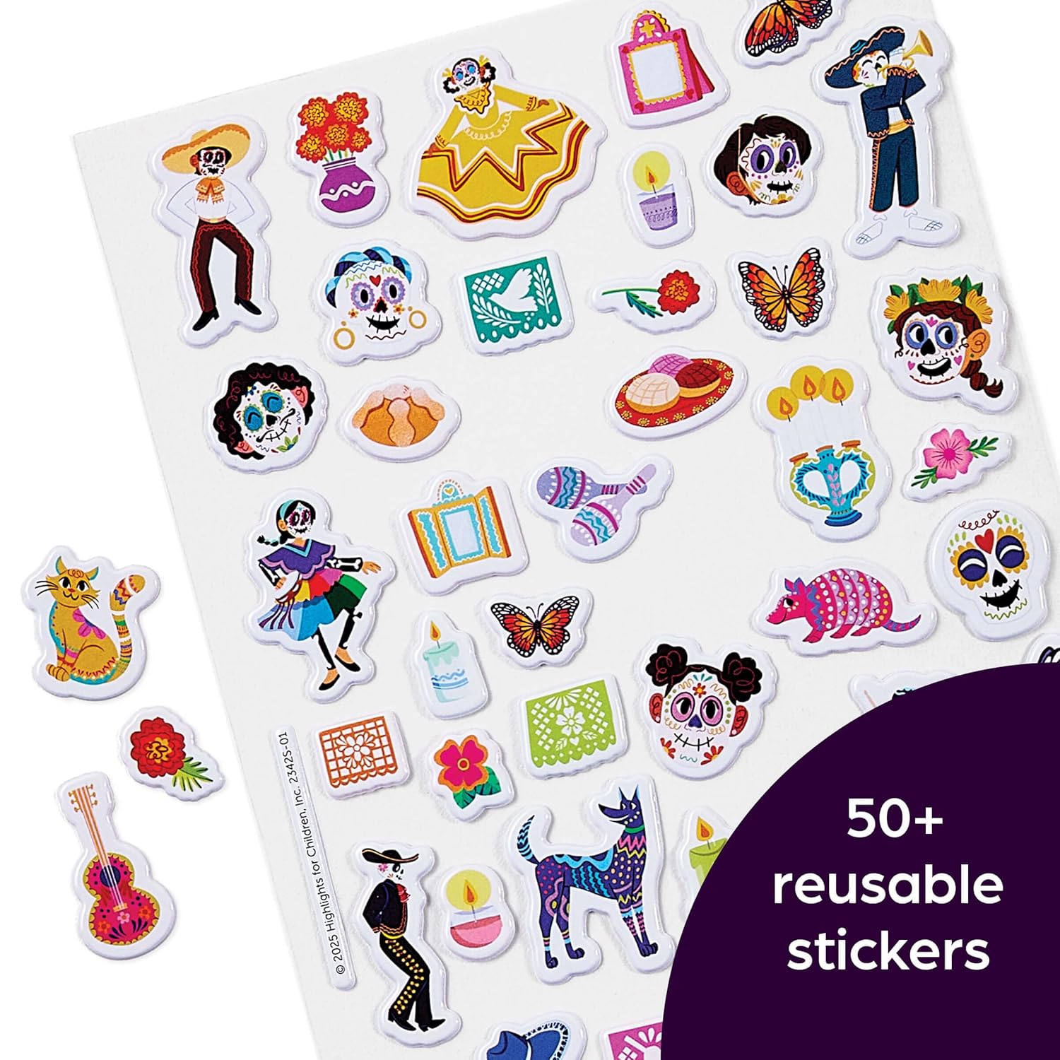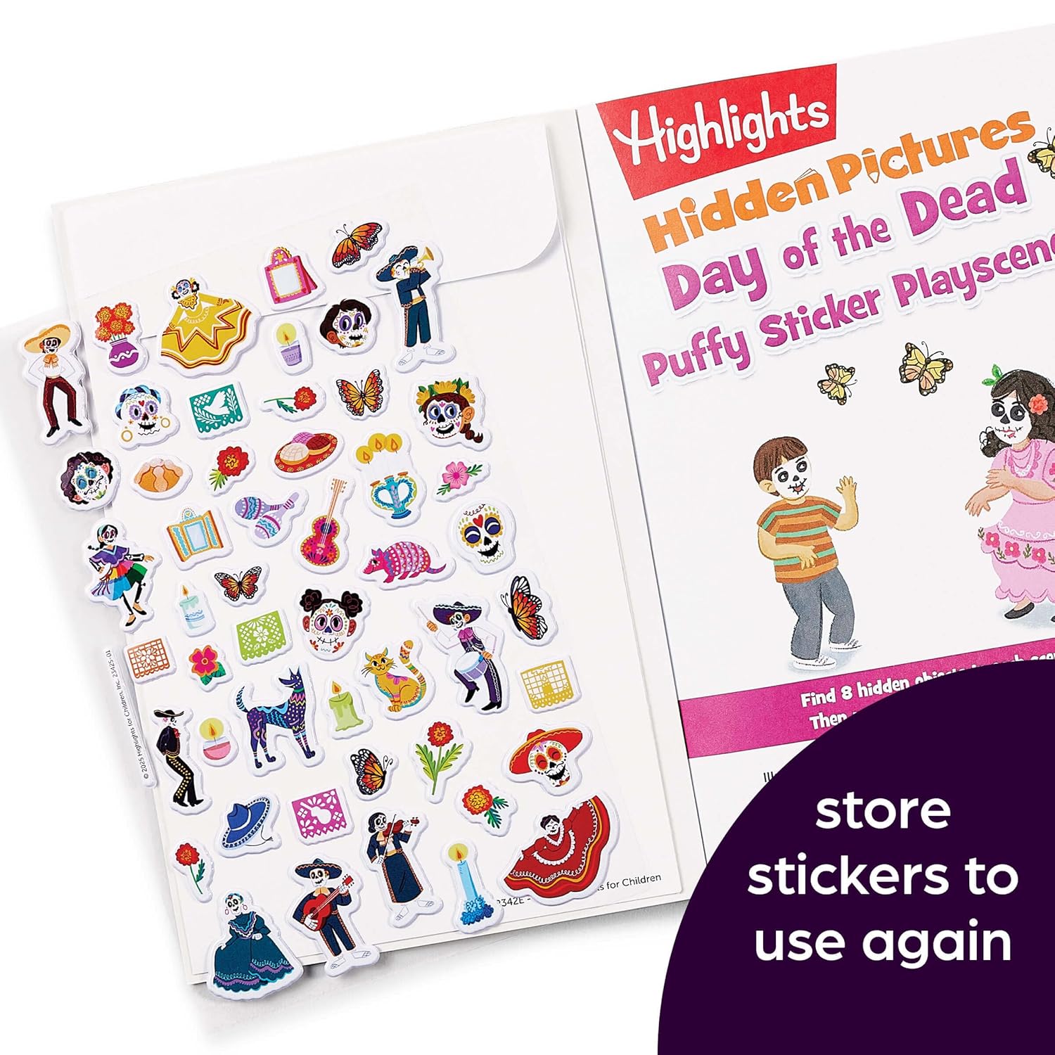 Engrossing and mess-free, Day of the Dead Puffy Sticker Playscenes provides hours of entertainment, wherever kids go. Take the book — and the magic of the holiday — in the car, to restaurants, to waiting rooms and beyond! This puffy sticker activity book includes: