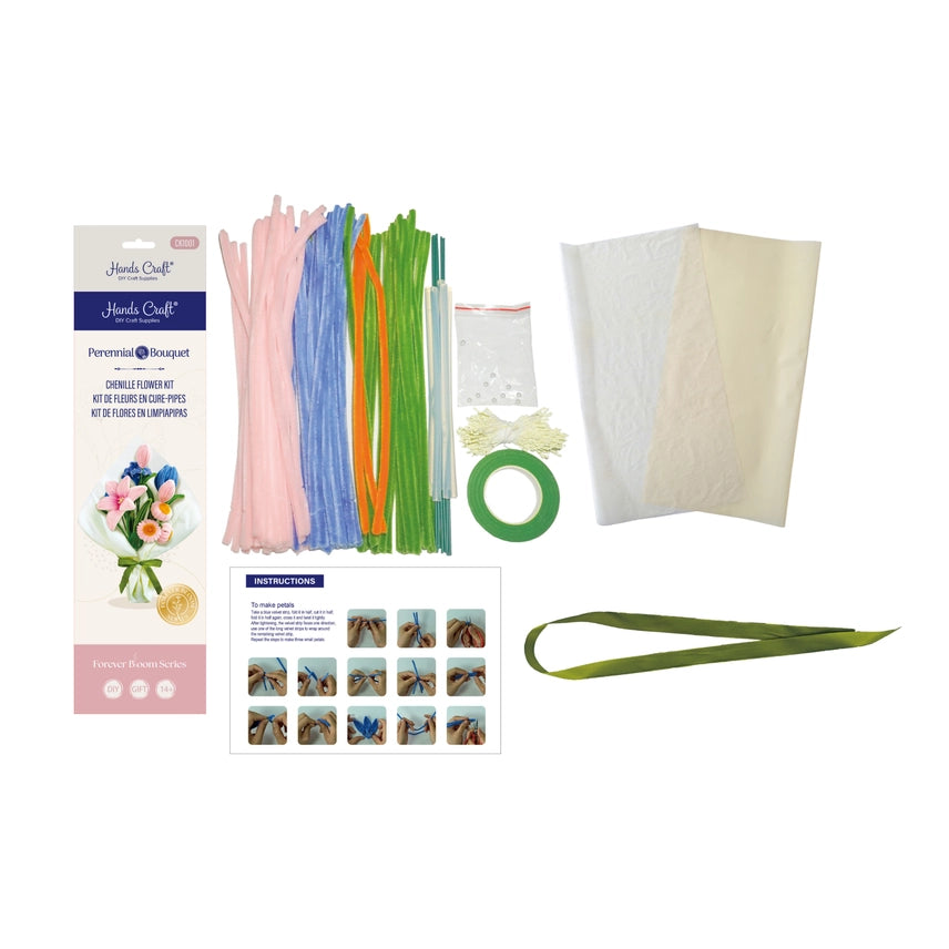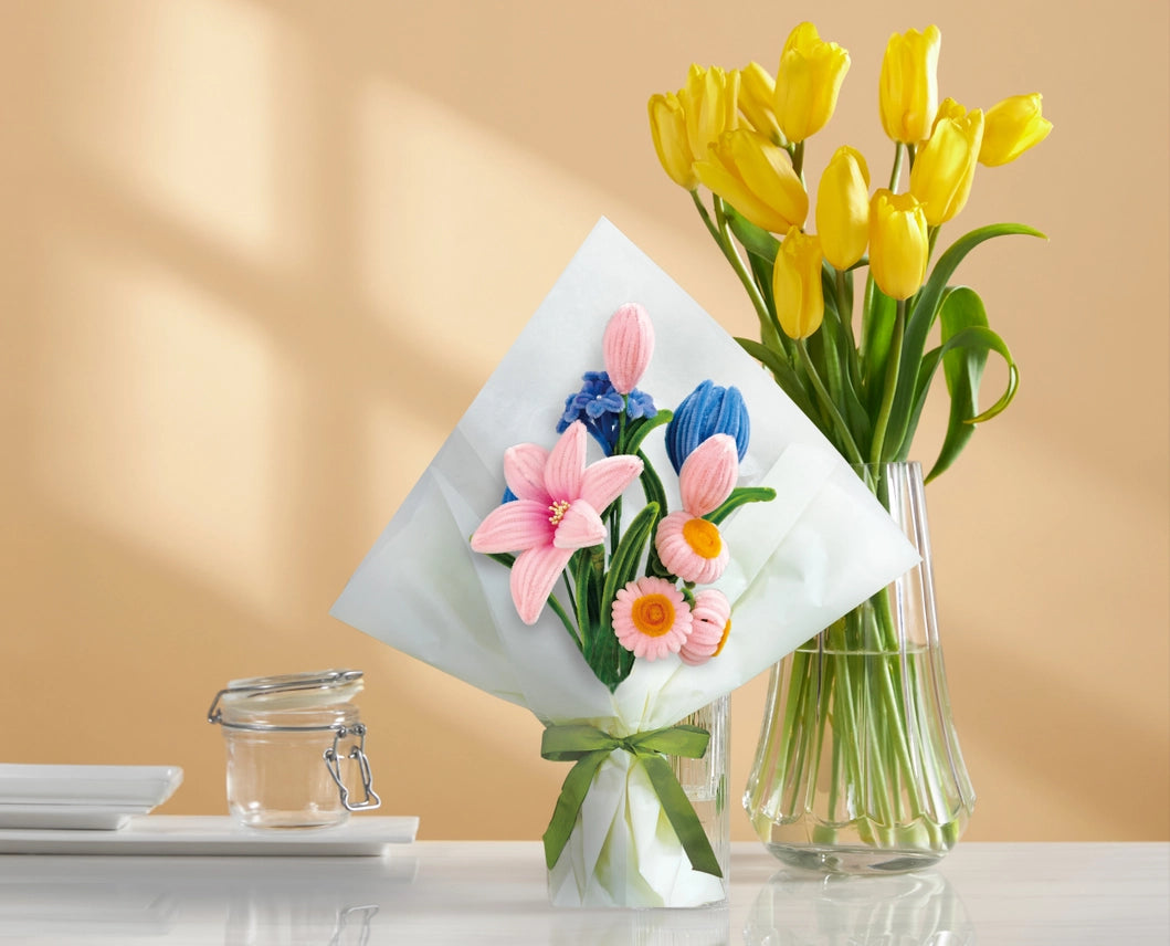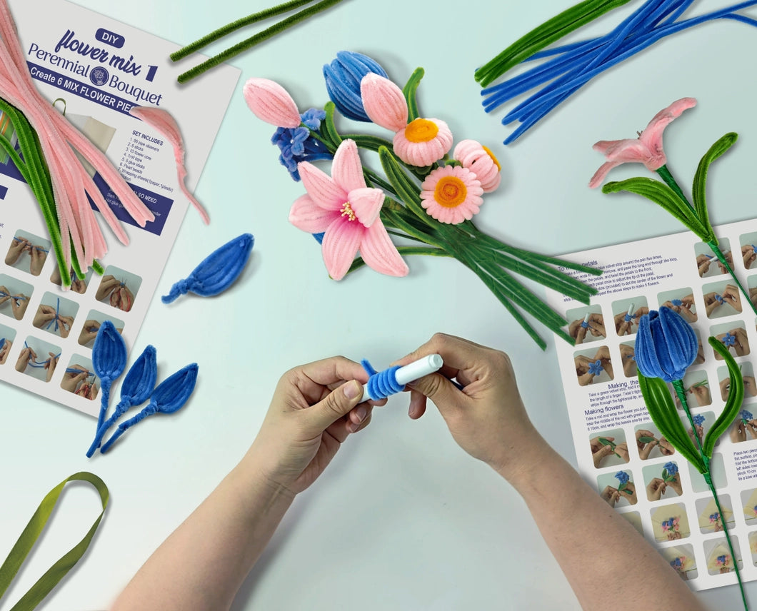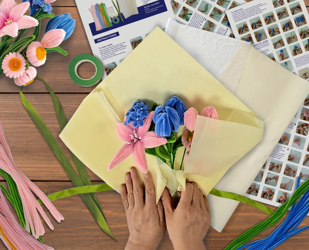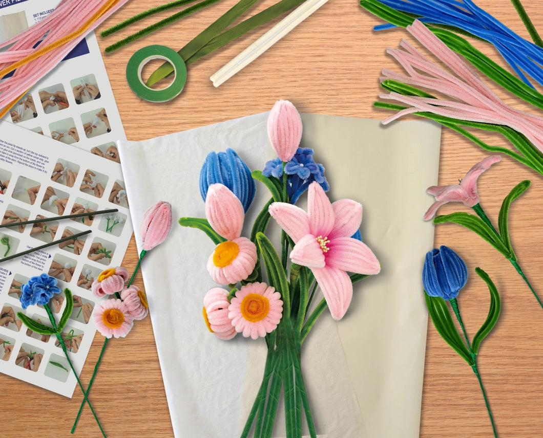 DIY Chenille Flower Bouquet Kit | Pink & Blue Mix