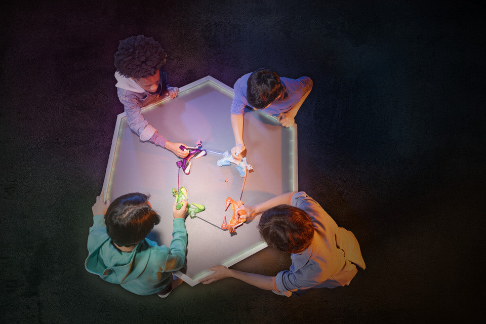 Step into the high-energy, fast-paced world of Doteki, where YOU are the action in every epic battle! Doteki is more than a game—it’s a fully immersive battle system that you control and expands to include any number of players. Using Doteki battle controllers to create dynamic arenas that shift from side to side as you play, you and your friends will engage in battles that put your reflexes and strategic thinking to the test. Your health key is your lifeline in the heat of battle. It tracks your life points and determines how long you can stay in the fight. As health keys lose points, every move matters, every hit is critical, and every successful block brings you closer to the ultimate win. Align yourself with one of four elemental factions—Arctos, Heatoru, Organika, and Spiritek—and battle with unique collectable characters that are exclusive to each set. With a growing range of champions to choose from, customizable setups, and endless opportunities for multiplayer action, Doteki transforms gametime into an electrifying competition.