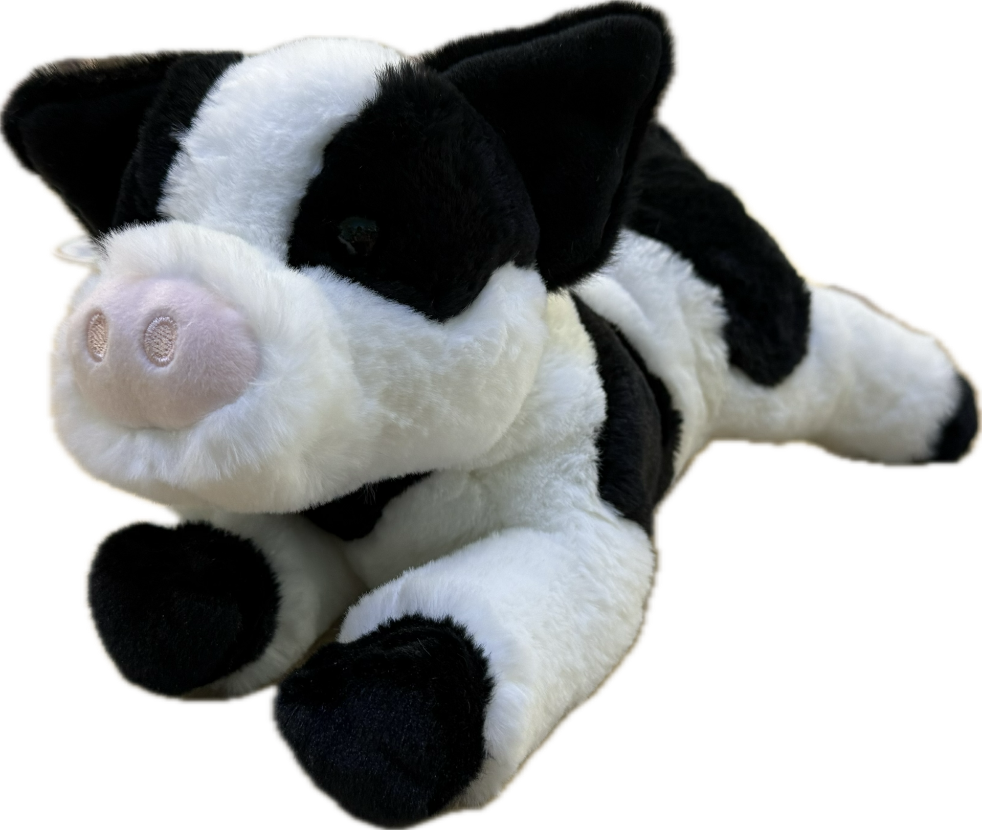 Meet Ollie, the adorable black and white pig that's ready to become your little one's favorite cuddle buddy. Crafted from ultra-soft plush material, this gentle companion is perfect for snuggling during nap time, playtime, or whenever comfort is needed. Ollie's sweet expression and huggable design make him an instant friend for babies and toddlers. A timeless addition to any nursery or toy collection.
