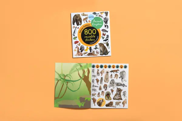 The best-selling Eyelike Stickers series, with over 4 million copies in print, has a new, big addition. It's a double-thick bind-up of Eyelike Animals and Eyelike Wild Animals, which means that this deluxe edition is stuffed with more than 800 roaringly awesome animal stickers. Whether on windows, notebooks, lunch boxes, or scrapbooks, these peel-and-place stickers are designed to be stuck on, peeled off, and stuck on again without tearing or losing their “stick.” Plus, the front and back inside covers are glossy illustrated backgrounds on which kids can create lively and original sticker scenes―and then change them around whenever they like.