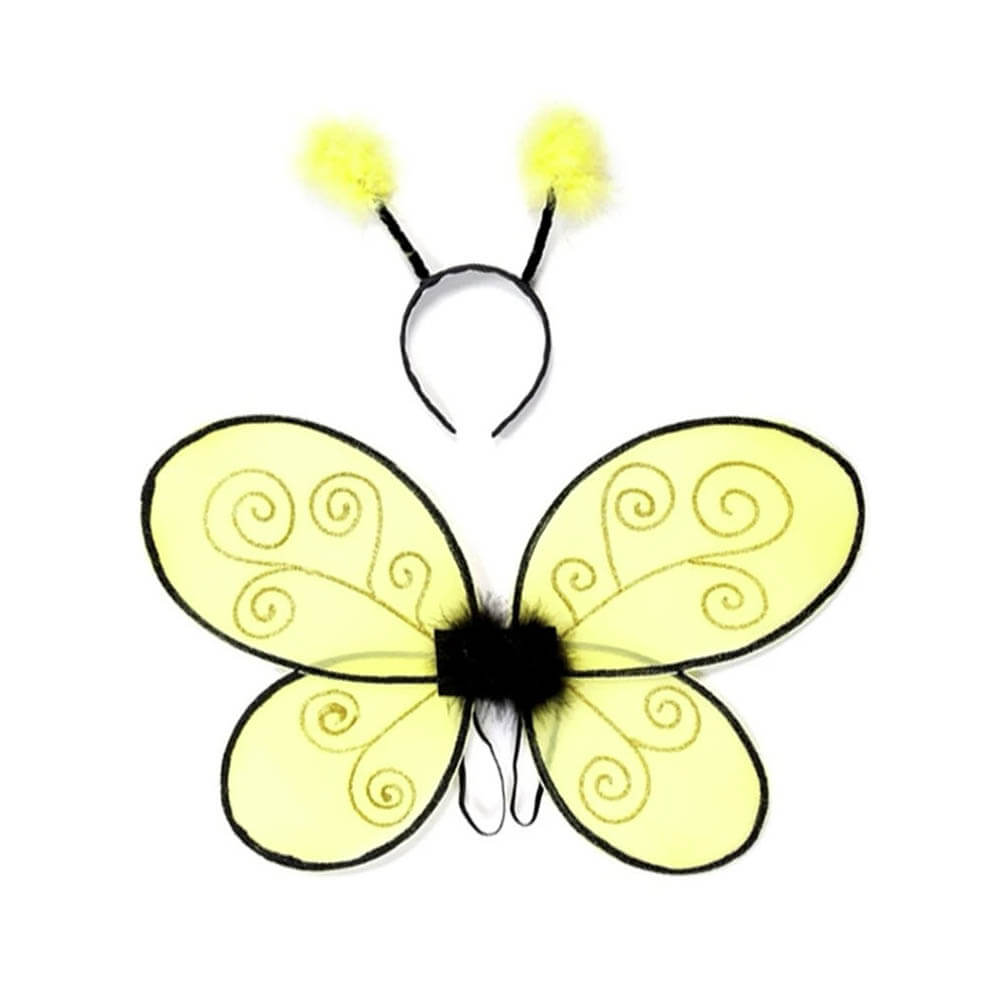 Bzzzz! Your adorable bumble bee needs a wing and headband set to fit in with the rest of the colony! Great for buzzing around the house or for fluttering around the backyard. Featuring soft marabou feather accents and gold glitter details, both pieces will have your little one flying around with excitement.