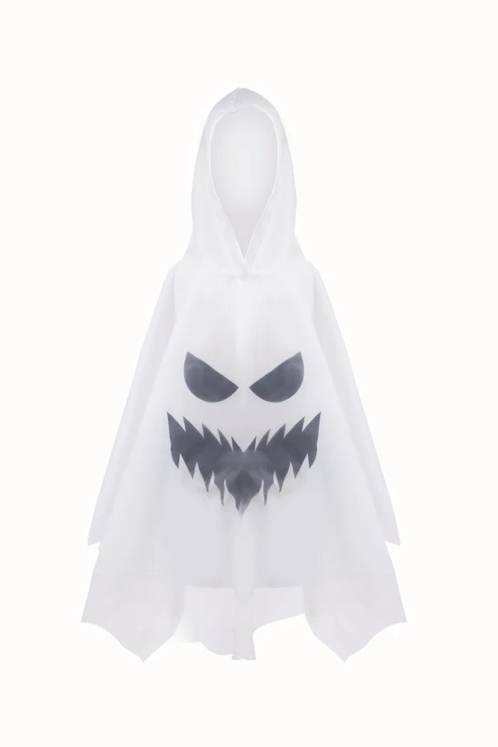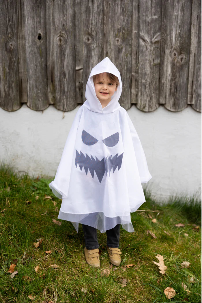 Boo-tifully simple and hauntingly fun, our NEW Spooky Ghost Poncho is the perfect costume for little ghouls who love to keep things comfy and creepy! Made from soft white fabric, this poncho features a classic ghost face design with bold black eyes and a mouth, plus a roomy hood for an extra eerie effect. The fabric flows and drapes just like a real ghost, creating a playful, floating silhouette that's perfect for trick-or-treating, Halloween parties, or spooky dress-up fun anytime.