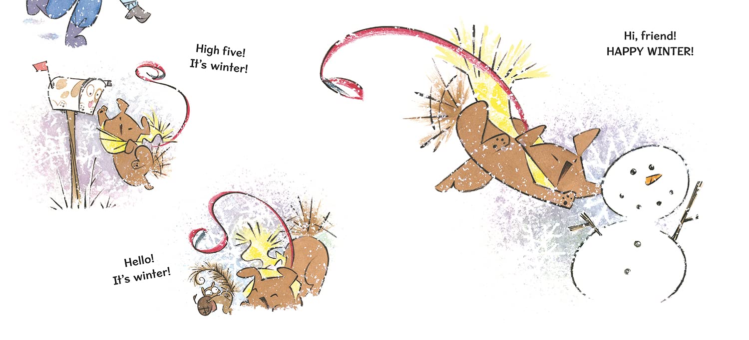 High five! It’s winter! For one spirited little puppy, winter means romping in the snow, birds to chase, fragrant evergreen trees, and joy, joy, joy! Then again, winter also means . . . oddly unfriendly deer? Millions of little lights? Contorting inflatable snowmen? Wait, what? If this is all winter too, then winter is kind of . . . weird! Helen Yoon’s fresh and hilarious take on the winter season—part of a quirky new series of picture books—is a blend of bumbling affection and slack-jawed wonder.
