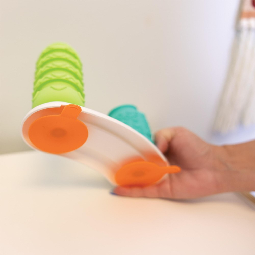 Double the fun, double the play! Krumples BOP & POP is the next evolution of the beloved Krumples sensory toy, now designed with two connected pieces that move in unison—when you squish one, the other pops up! Made from 100% food-grade silicone, it’s safe for curious hands and mouths while providing endless tactile engagement. Perfect for babies 6 months and up, BOP & POP encourages motor skill development, cause-and-effect learning, and hours of satisfying sensory play. Crunch it, scrunch it, push it, pop it—your little one won’t want to put it down!