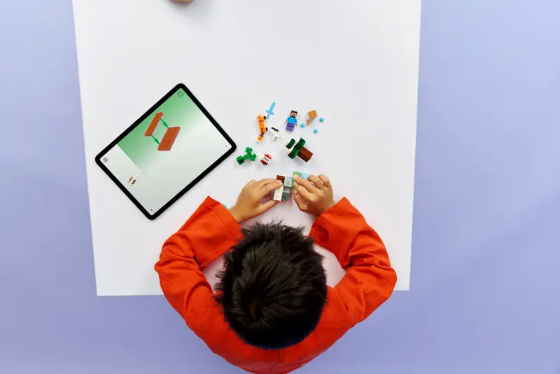 Take Minecraft® players' gaming to the next level with Steve’s Taiga Adventure (21583), a collectible building set for boys and girls 6 years old and up. This small LEGO® set is bursting with battle action, treasure hunting and explosive fun for kids to explore with a Steve minifigure, plus a Creeper™, fox and a baby bunny LEGO figures. Kids join one of the game's heroes, Steve, as he mines diamonds in the Minecraft taiga biome, with its distinctive spruce tree, snow and taiga grass. TNT and an explosion function blast the rocks apart to reveal diamonds, which can be stored in a treasure chest. There’s also a hostile Creeper to fend off using Steve’s diamond sword. This set makes a great gift idea for Minecraft players, LEGO builders and fans of gaming decor. And, with the LEGO Builder app, kids can build with confidence – zoom, rotate in 3D and track progress with easy-to-follow digital instructions. Set contains 79 pieces.
