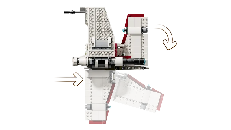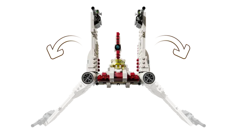 - LEGO® brick-built Star Wars™ starfighter – Features an opening cockpit, adjustable wings for flight and landing modes and 2 stud shooters for fantasy battle play